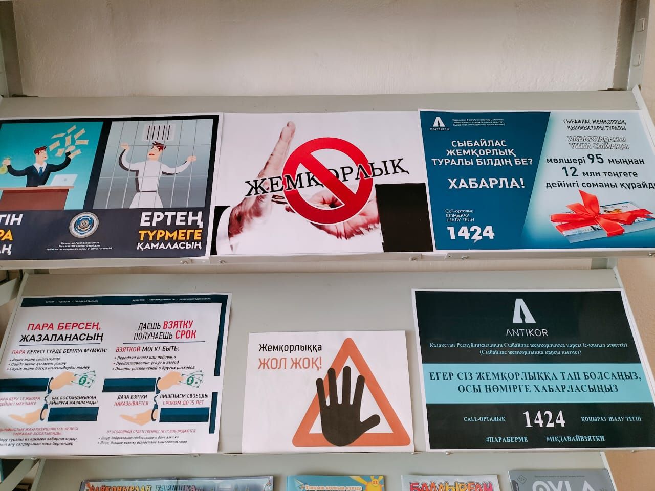 В целях борьбы с коррупцией в библиотеке Темиртауского городского управления образования «Общеобразовательная школа №2» организована выставка «Коррупции нет пути!».