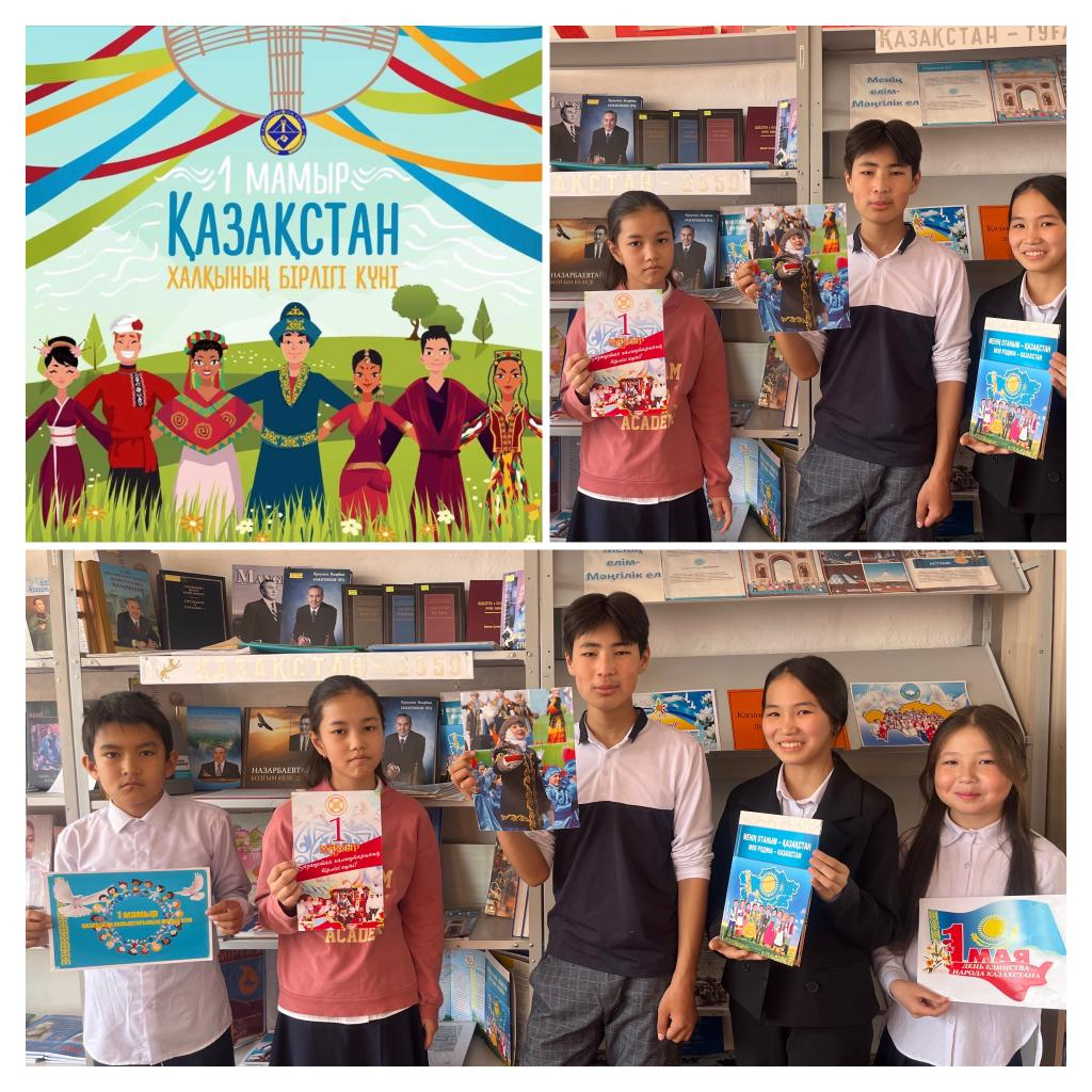 Темиртауское городское управление образования «Общеобразовательная школа N2» библиотека 1 мая по случаю Дня единства народов Казахстанской области с книжной выставкой «Казахстан - м…