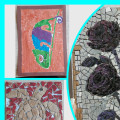 Выставка работ учащихся восьмых классов. Работы выполнены в технике «Мозайка».