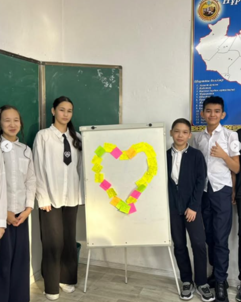 Сабақ барысында балалар бір-біріне жылы сөздер айтып, а…