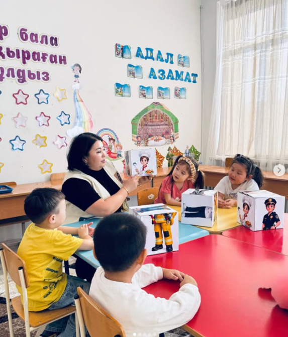 Мамандықтардың қоғамдағы маңызы түсіндіріліп, балалар дәрігер, аспаз, ұстаз, өрт сөндіруші сияқты мамандықтар жайлы әңгімеледі.