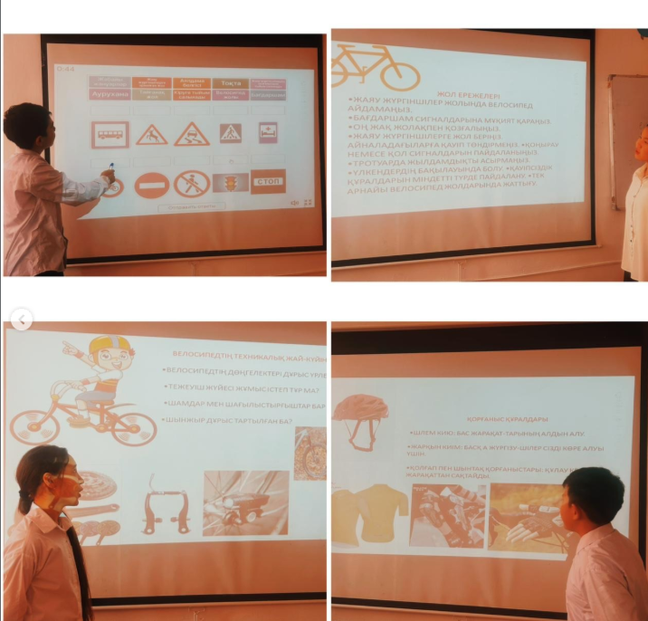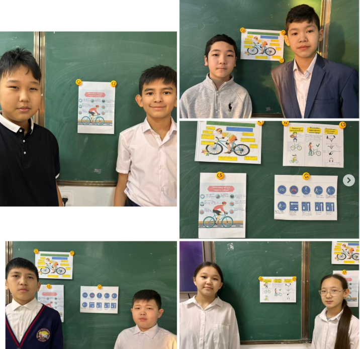 7 “Ә” сыныбында “Өзіңізге және айналаңыздағыларға қауіпсіз велосипед тебуді қалай қамтамасыз етуге болады?” тақырыбында тәрбие сағаты өтті. Сабақ барысында оқушыларға велоси…