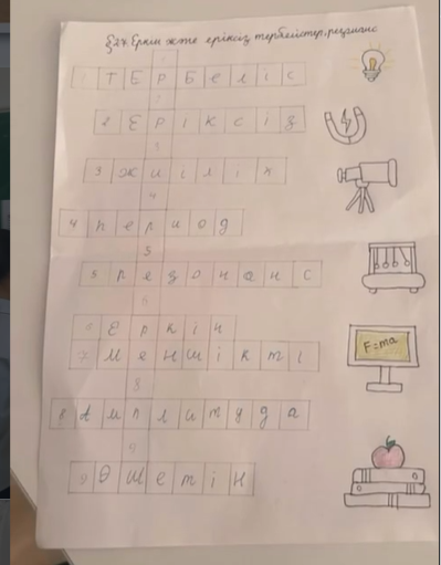 Жаратылыстану апталығы аясында «Еркін және еріксіз тербеліс. Резонанс» тақырыбында қызықты крассворд ұйымдастырылды.