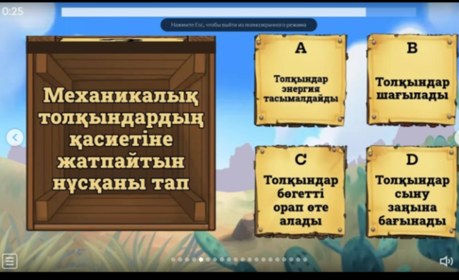 Оқушылар тербеліс түрлері мен резонанс құбылысына қатысты сұрақтарға жауап беріп, білімдерін ойын арқылы бекітті. Барлық сынып белсенді қатысып, тапсырмаларды қызығушылықпен орындады ????✨