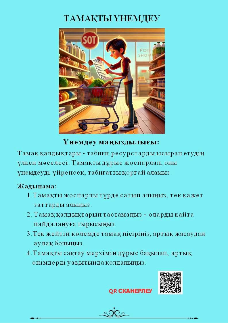 Үнемді тұтынуды балаға үйрету ең алдымен ата-ананың өзінен басталады. Балалар үлкендердің әрекетін қайталайтындықтан, отбасы мүшелері затты ойланбай сатып алмауға, бағаны салыстырып, қажет нәрсені ғ…