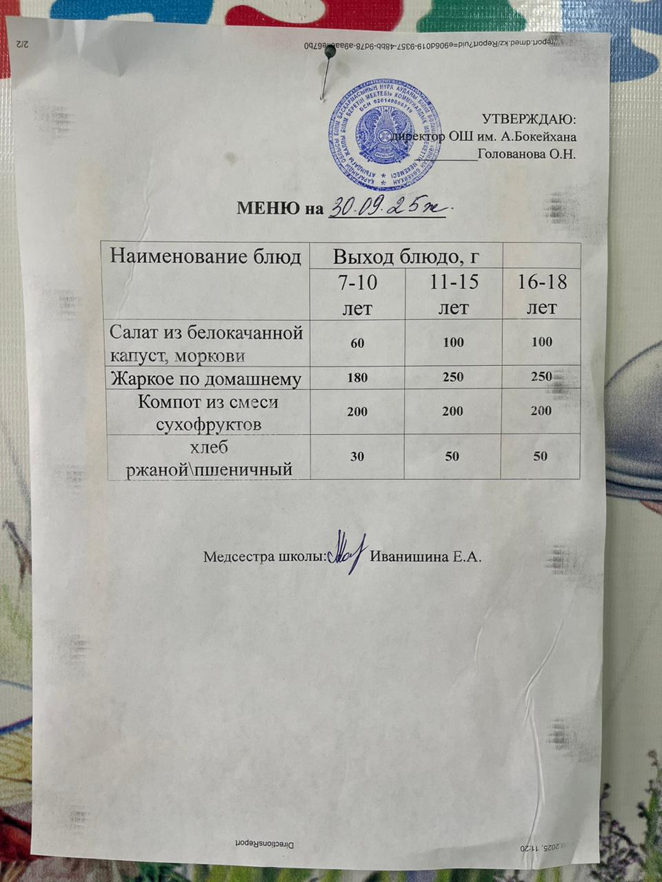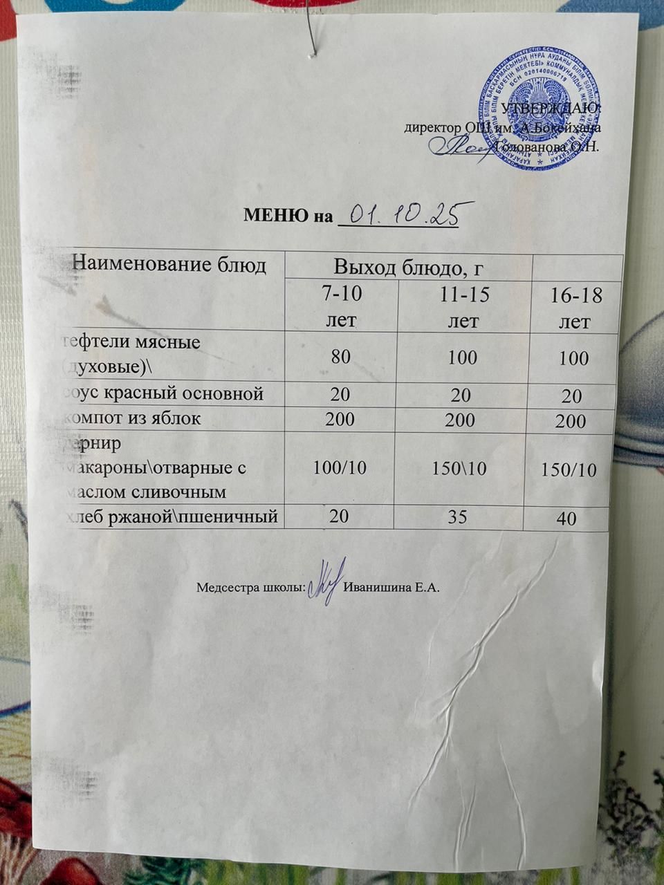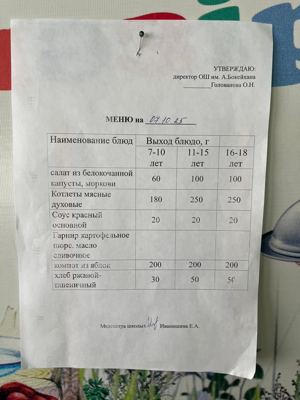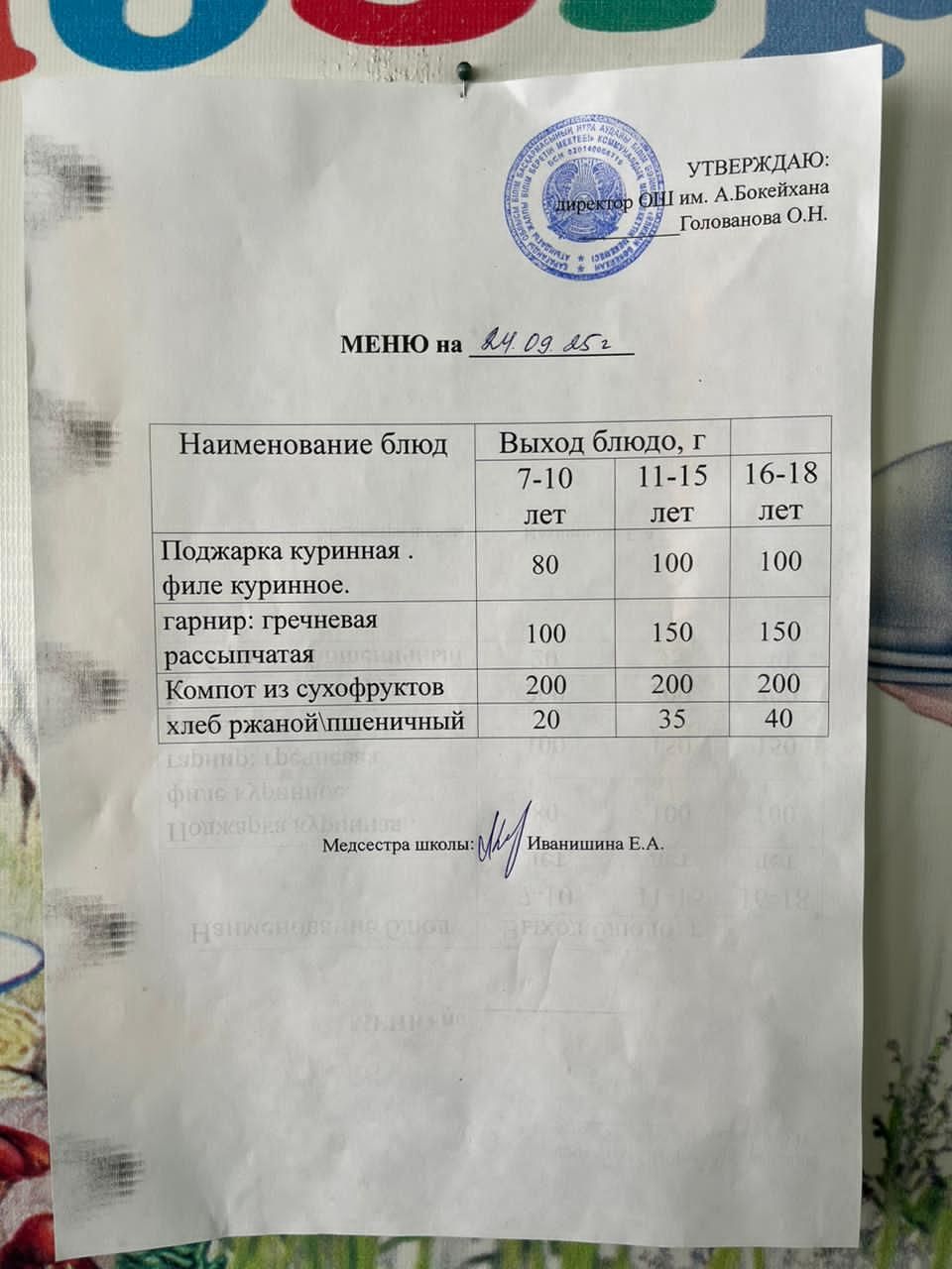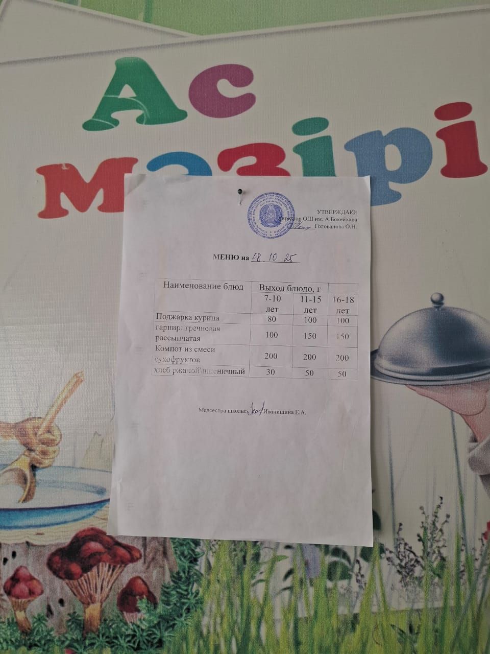 Перспективное двухнедельное меню блюд для организации питания учащихся начальных классов а также 5-11 классов в КГУ ОШ им Алихана Бокейхана 2024-2025 учебный год