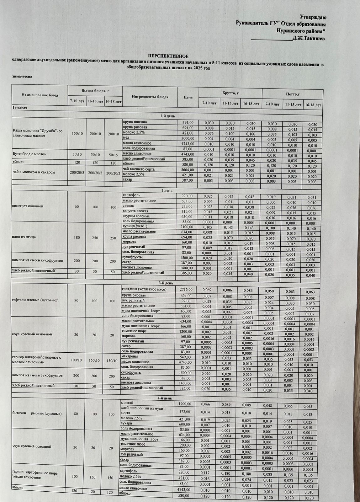 Приказ по питанию 2024 год и меню для столовых и буфета