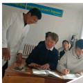 "Медициналық жоба,, аясында, тазалық сақшылар оқушылардың тазалық тарын тексеру үстінде.