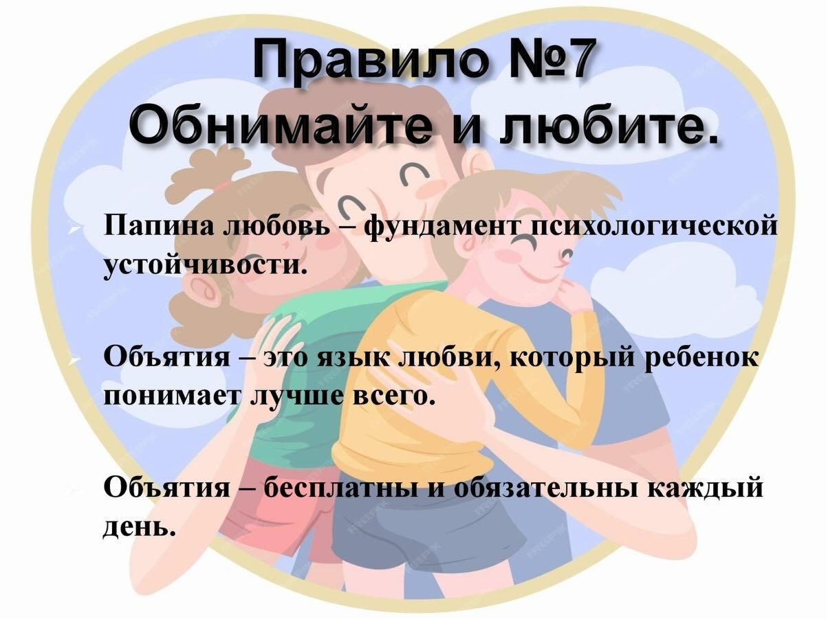 «Әкелер мектебі» мектеп жұмысының бір бөлігі ретінде аясында «Әкелердің жеті мінез-құлық ережесі» кеңесі. Дайындаған тәрбиеші К.В. Везнер.
