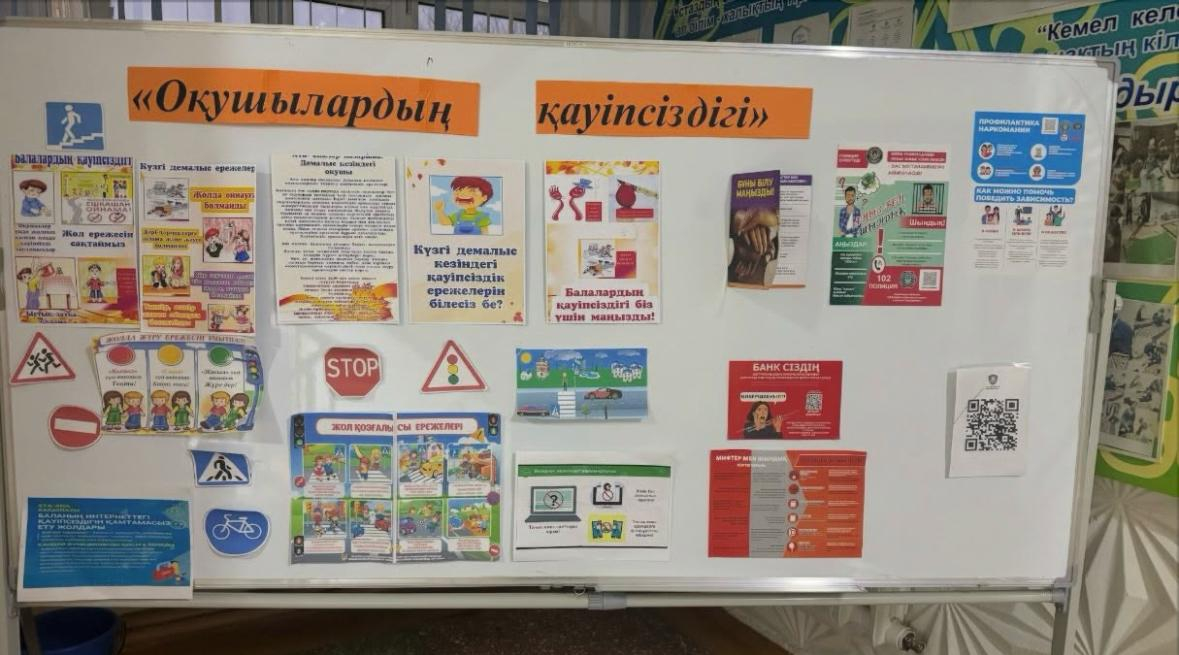 2025-2026 оқу жылында оқушылардың “Өмір қауіпсіздігі” тақырыбында ақпараттық бұрыш жасалып, төтенше жағдай болған кезде оқушыға бағыт бағдар беретін ақпараттар әзірленді.