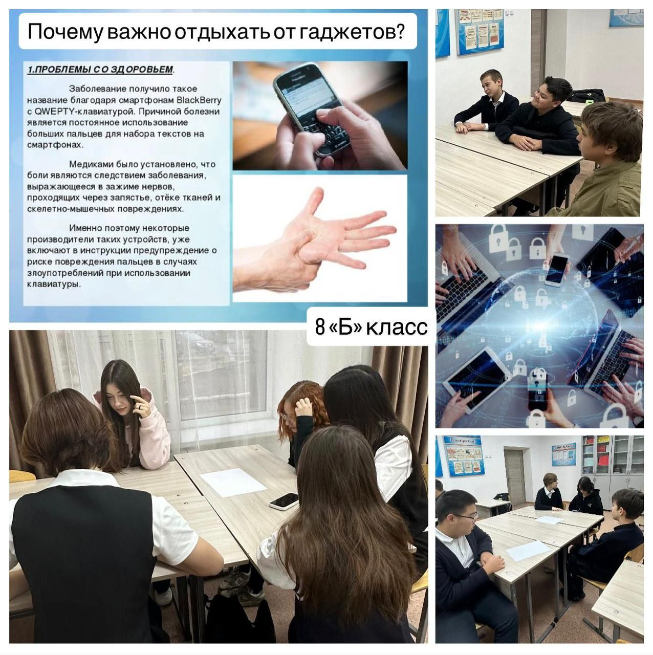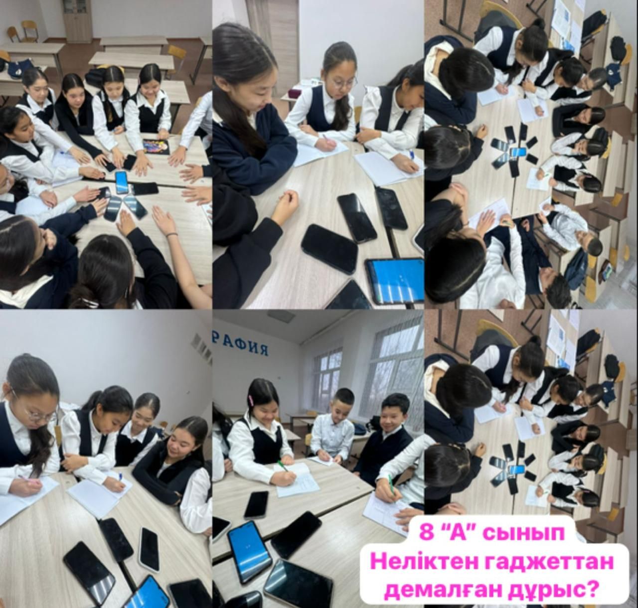 «Саламатты Мектеп» жобасы аясында 2025 жылғы 24 қарашада 8-сынып оқушылары арасында «Гаджеттерден демалу не үшін маңызды?» атты викторинамен «Гаджетсіз апта» бастау алды.