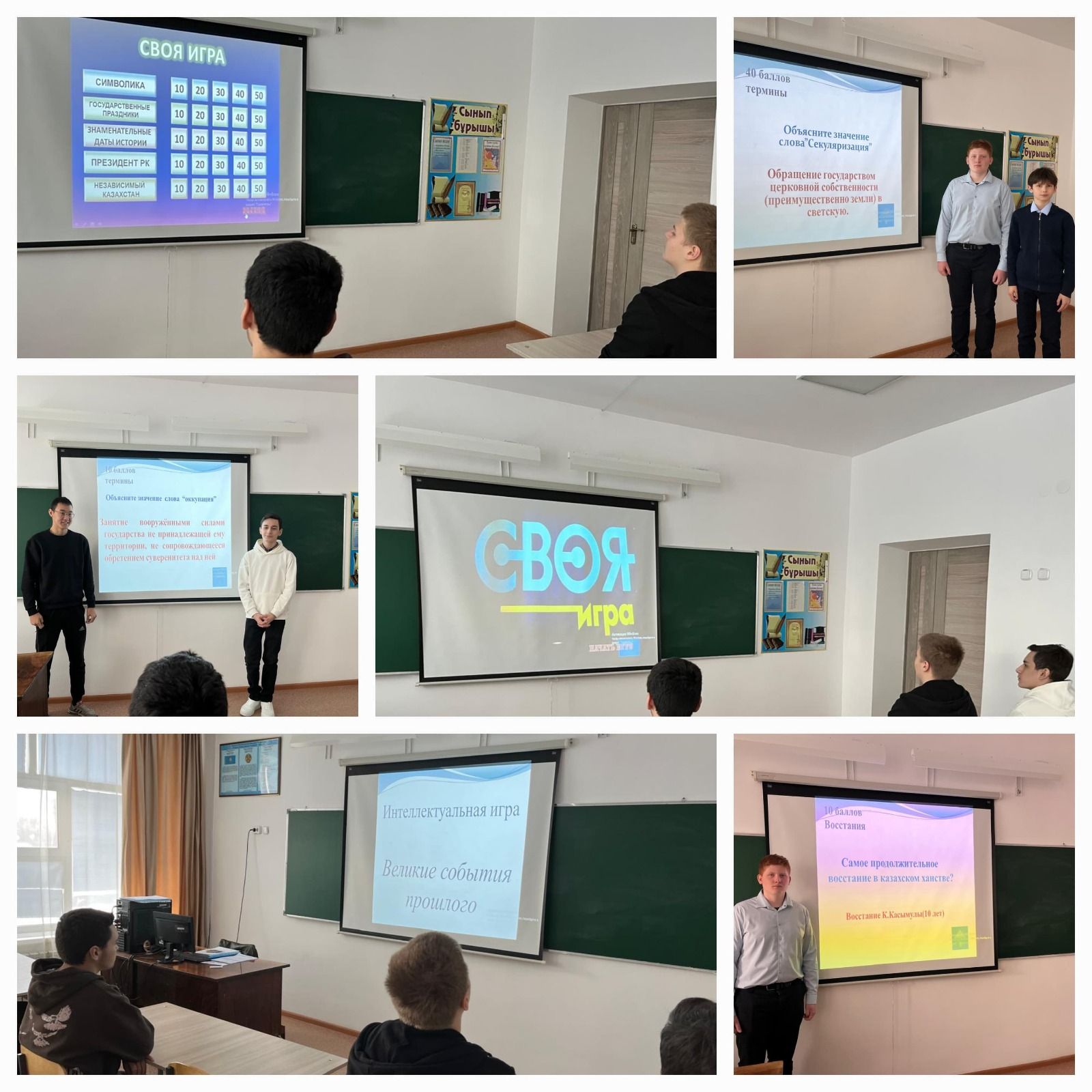 11 декабря 2025 года в КГУ «ОШ им.К.Аманжолова» в рамках Недели исторической грамотности Апсаттарова С.С., учитель истории, провела интеллектуальную игру для учеников 10 «Б» класса на тему: «Калейдоскоп имен и дат»