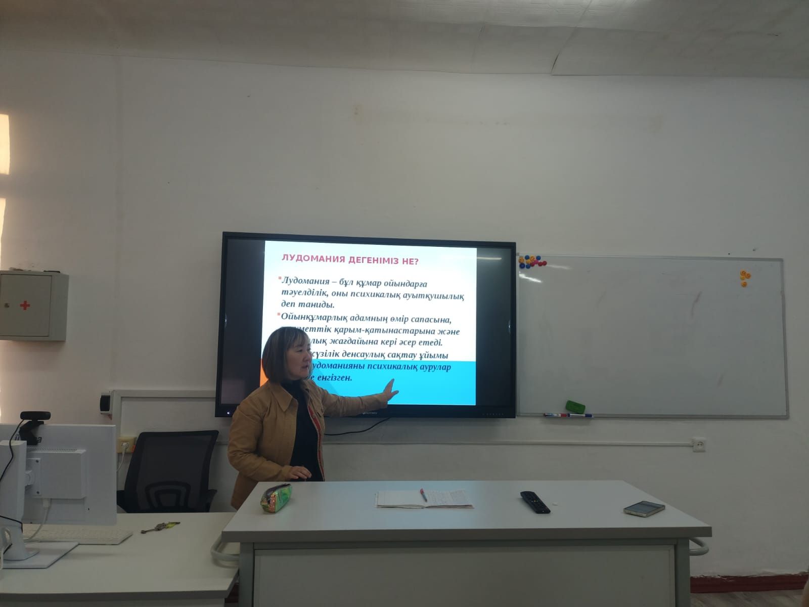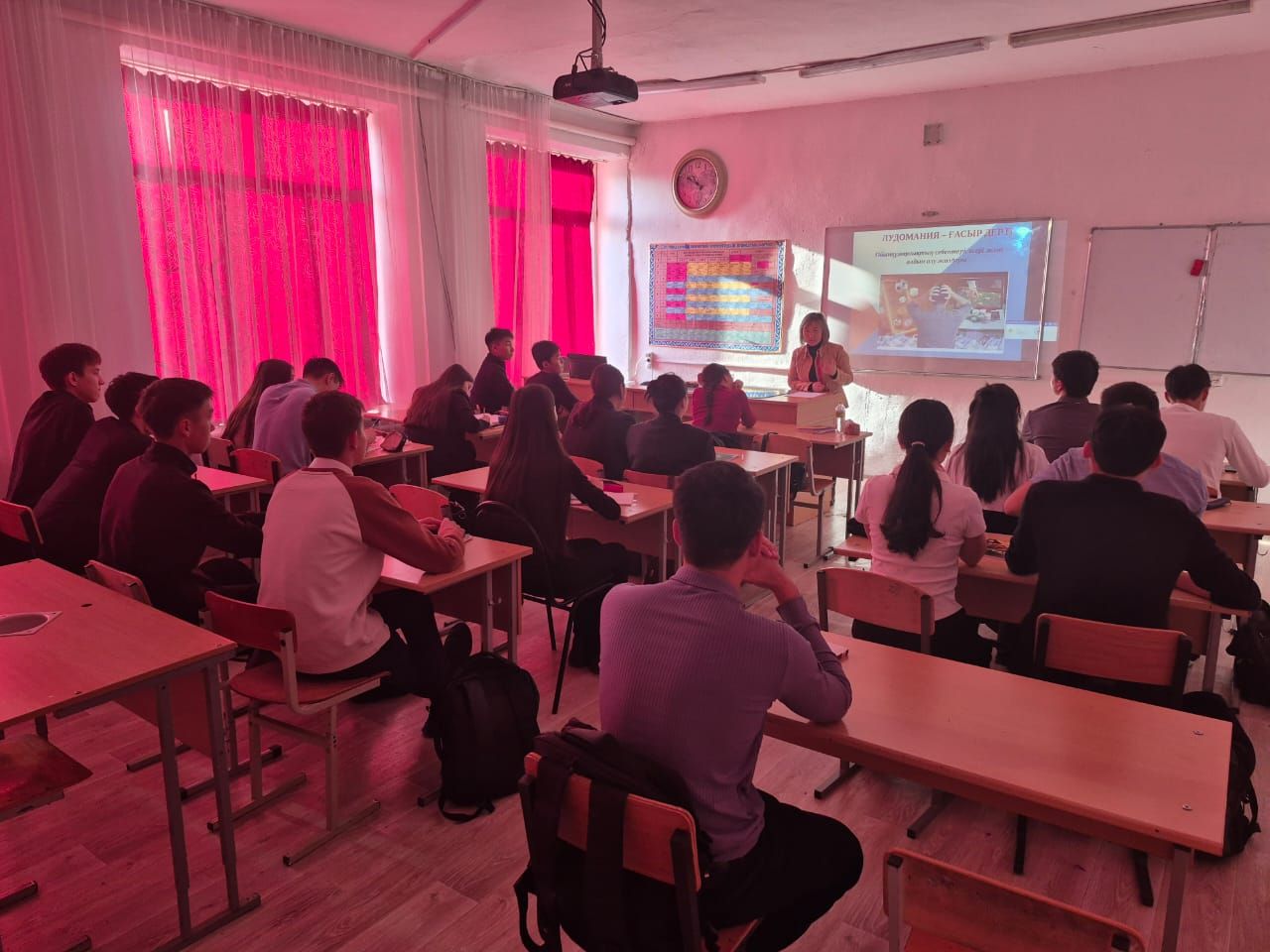Лудомания  - қоғам дертіне айналған, адамның әлеуметтік,  кәсіби,  материалдық және отбасылық құндылықтардың төмендеуіне әкелетін патологиялық ойын. Осы мақсатта мектебіміздің педагог  - психологы Айнұр Жомартқызы орта және жоғарғы буын  оқушылары арасында "Лудомания  - өмірді ойынға айналдырма" тақырыбында ақпараттық сағат өткізді.Оқушыларға лудомания дегеніміз не,  оның себептері, қалыптастыру кезеңдері, зияндары қандай және осы тәуелділікпен қалай күресуге болатындығы туралы ақпарат берілді. Шара барысында оқушылар практикалық тапсырмалар орындап, бір  - бірімен  пікірталас жүргізді. Олар өз көзқарастарын дәлелдер арқылы негіздеп, ойларын еркін жеткізе алды.