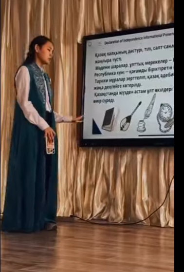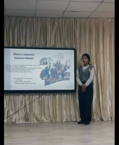 “Тарих толқынында” тарихи сауаттылық апталығы барысында 9-сынып оқушылары арасында “Менің тәуелсіз Қазақстаным” тақырыбында презентациялық сайыс ұйымдастырылды. Сайысқа қатысушылар Тәуелсіз Қазақстанның жетістіктері, даму кезеңдері және ұлттық құндылықтары туралы мазмұнды жұмыстарын ұсынды. Оқушылар өз презентацияларын жан-жақты деректермен толықтырып, шығармашыл тәсілмен қорғап шықты. Шара барысында оқушылардың ел тарихына деген қызығушылығы мен патриоттық сезімі айқын көрінді. Презентациялық сайыс қатысушыларға жаңа ақпарат алуға, ой бөлісуге және өз қабілеттерін көрсетуге мүмкіндік берді.