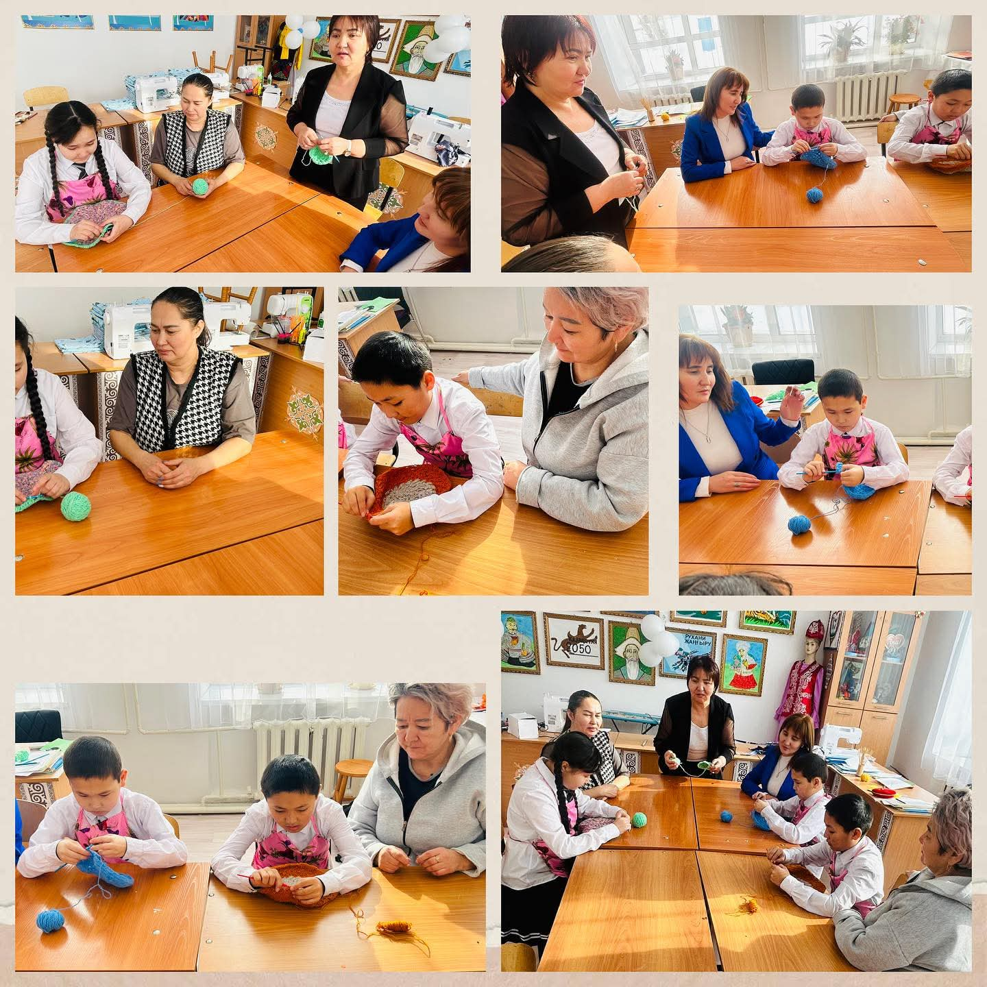 "Даналық мектебі" жобасы аясында "Аналар мектебі" клубының мүшелері баларымен бірлесе отырып тоқыма жұмыстарымен айналысты.