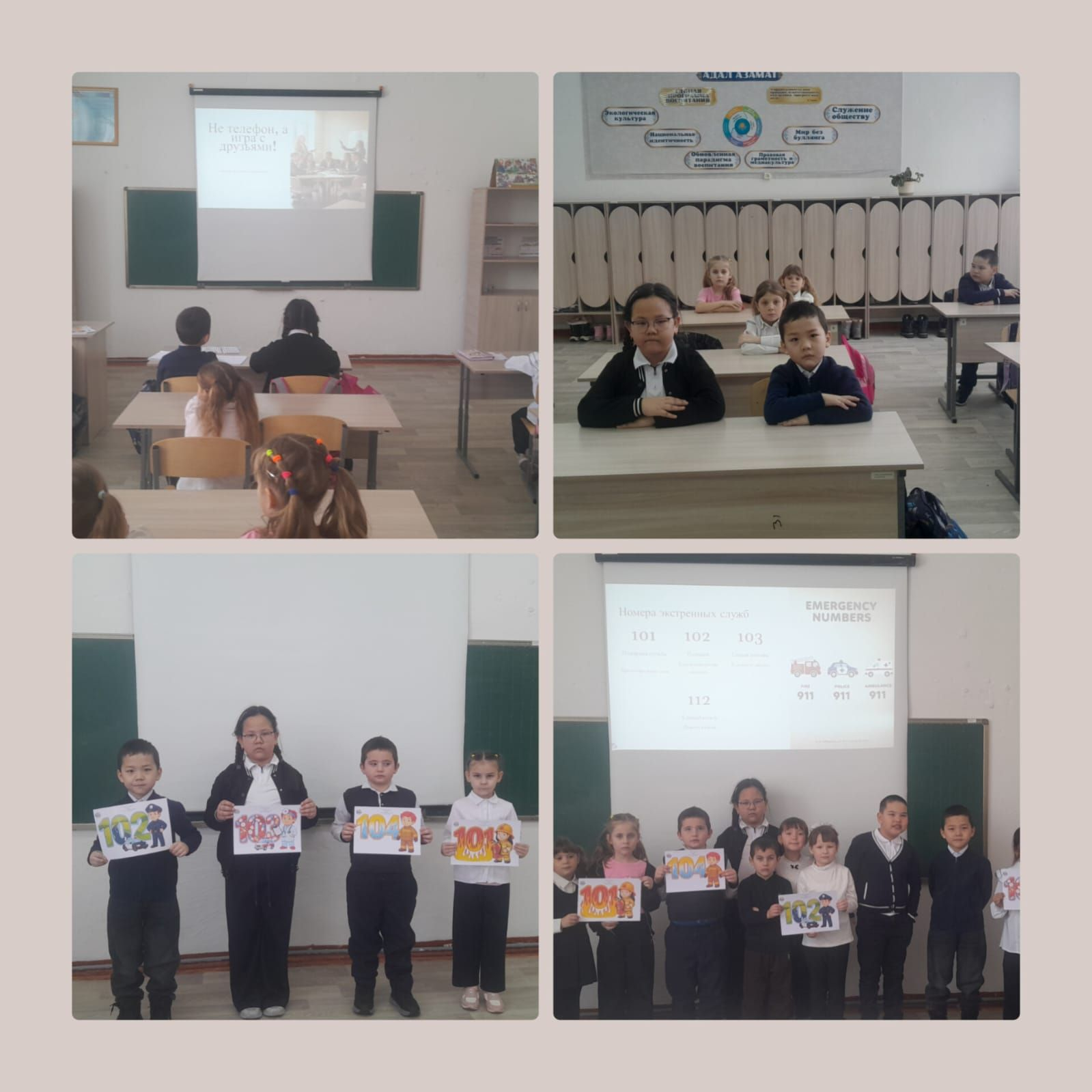 ОШ имени А.Бокейхана в 1 классе прошёл классный час на тему "Не телефон, а игра с друзьями!". Цель: показать детям, что живое общение и игры с друзьями интереснее и полезнее, чем постоянное использование телефона. В ходе занятия ребята рассуждали о том, что играть с друзьями лучше, чем сидеть за телефоном. Также был проведён урок безопасности на тему "Номера экстренных служб ". Классный час прошёл в тёплой и дружеской атмосфере.