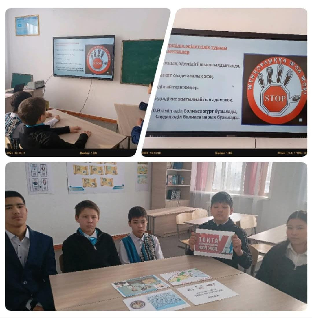 С.О.Талжанов атындағы ЖББ мектепте 27 қаңтар күні "Сыбайлас жемқорлыққа жол жоқ" атты тақырыпта 7 сынып оқушыларына түсіндірме жұмыстары жүргізілді.