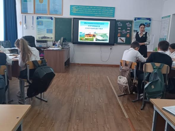 Целью занятия было познакомить учеников с особенностями хозяйства древних племён, проживавших на территории современного Казахстана, и раскрыть причины перехода от оседлого образа жизни к кочевому.