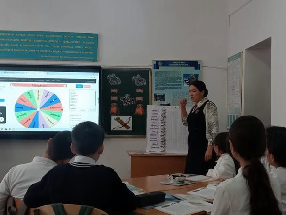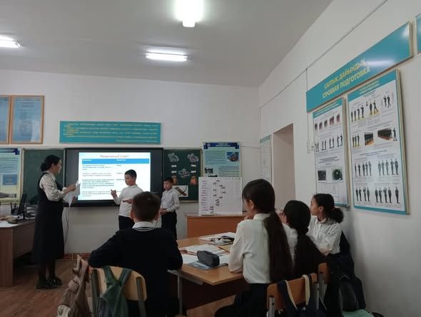 Ученики работали с иллюстрациями, картами, фрагментами учебного текста, участвовали в групповых мини-обсуждениях. Особый интерес вызвала практическая часть урока: учащиеся попытались составить собственную «карту кочёвок», используя знания о природных зонах Казахстана.