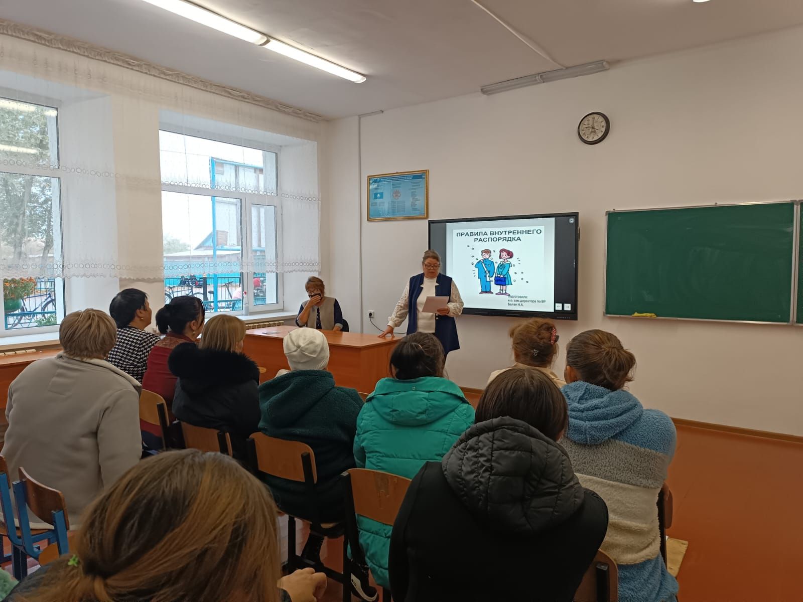 Вопросы внутришкольного распорядка касались соблюдения правил школьной дисциплины, режима посещаемости и мер по укреплению взаимодействия между педагогами, родителями и учащимися. Обсуждались также вопросы безопасности в школе и ответственности каждого участника образовательного процесса за создание благоприятной атмосферы (зам.директора по ВР Балан Н.А.)