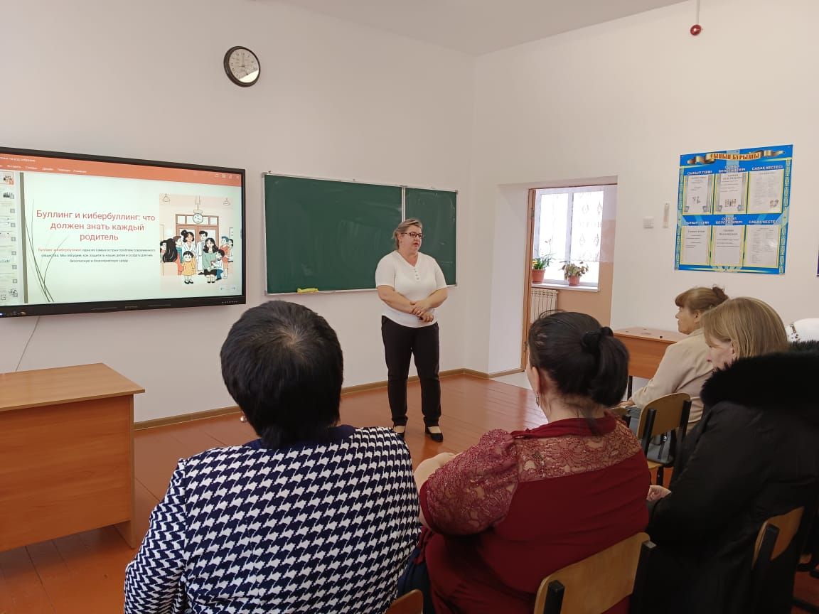 Большое внимание было уделено вопросам профилактики буллинга и кибербуллинга. Психолог школы Горная И.А. подчеркнула актуальность данной проблемы и обратилась к родителям с важными вопросами: