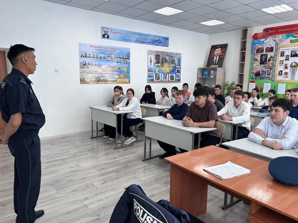 Сонымен қатар оқушыларға құқықтық сауаттылықты арттыру, заң талаптарын сақтау және жеке жауапкершілікті сезіну қажеттігі туралы ақпарат берілді.