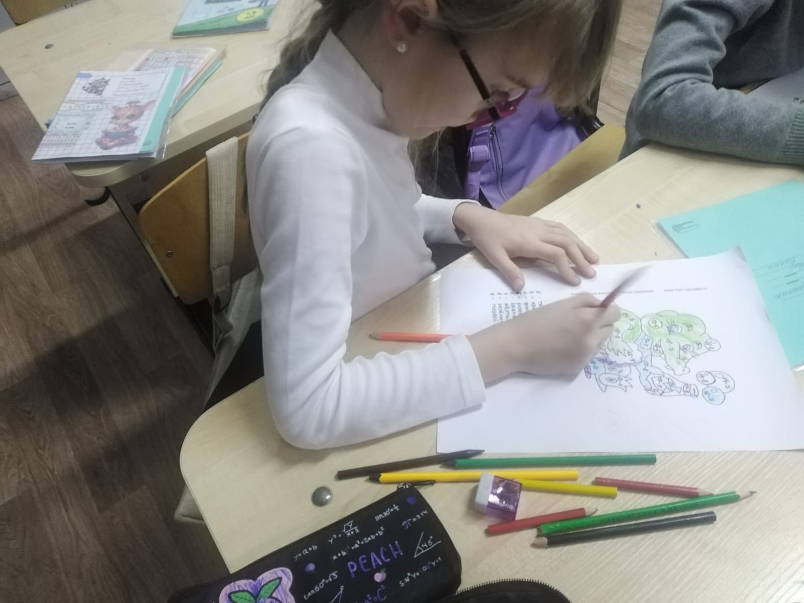В рамках недели маматематики, в ош им. М. Дулатулы во 2 русском классе прошёл конкурс рисунков на тему : "Математика вокруг нас". Цель конкурса: формирование у младших школьников интерес к предмету математика; развитие логического мышления и закрепление знаний математических действий (сложение и вычитание) ; развитие внимания.
