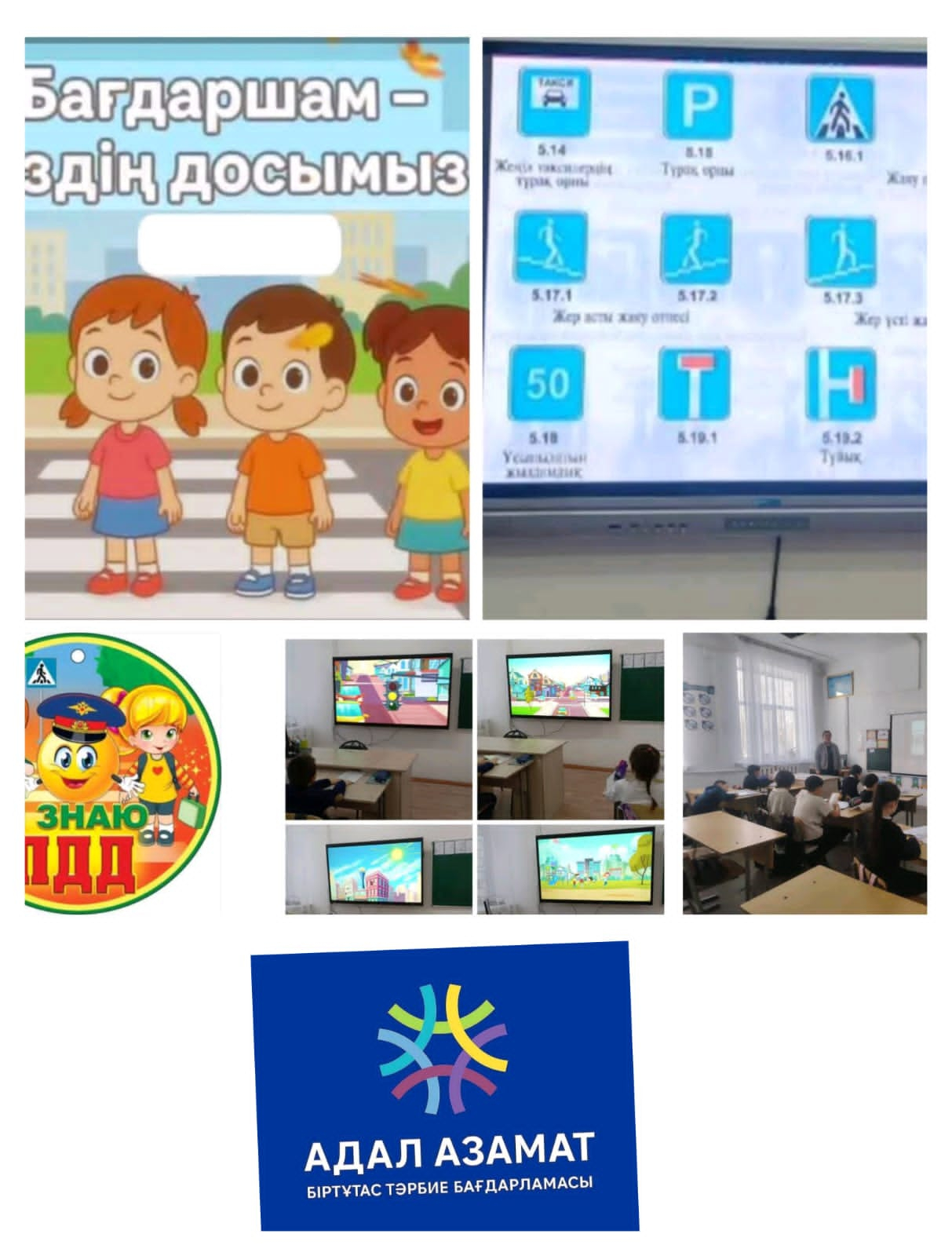 "Адал азамат" біртұтас тәрбие бағдарламасының жоспарына сәйкес «Көбейту кестесі сияқты қозғалыс ережелерін біліңіз» атты көңілді өзгеріс өткізілді.