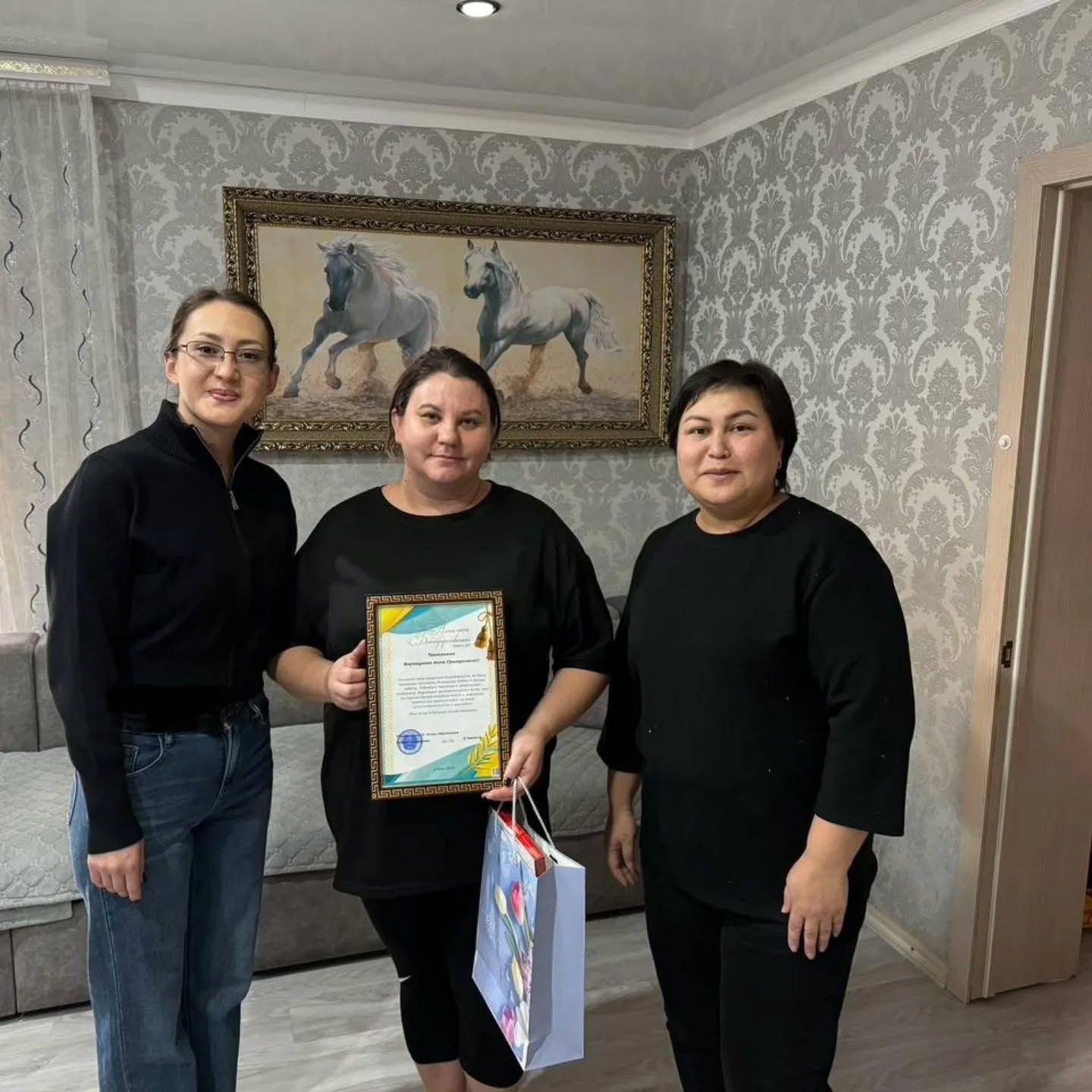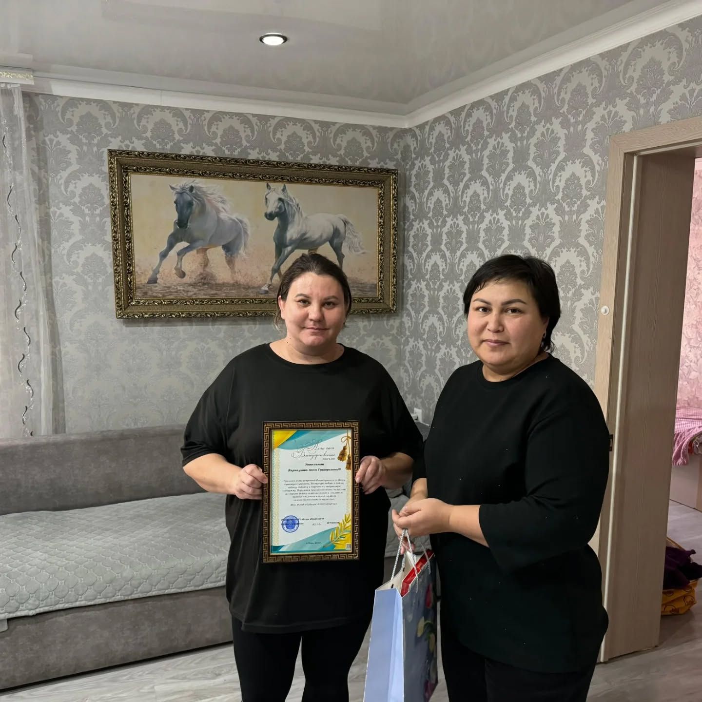 Қамқоршы күніне орай баланың болашағына жанашырлықпен қарап, мейірім мен махаббат сыйлап жүрген қамқоршыға аудандық білім бөлімінің басшысы ДЖ.Такишевтің атынан алғыс хат табысталып, мектеп атынан шағын сыйлық берілді.