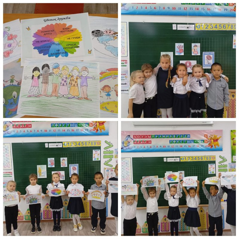 11.09.2025 КГУ "Опорная школа (РЦ) имени Ахмета Байтурсынулы " в 1 рус.классе в рамках недели "Мы против буллинга" прошла выставка рисунков "Дружба". Цель: воспитание у детей ценностей дружбы, взаимопомощи и уважения друг к другу через творческую деятельность.