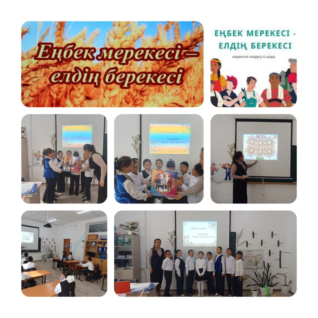 4- сынып оқушыларының арасында, "Еңбек - елдің берекесі" атты сынып сағаты өтті. Сынып сағатында оқушылар мақал-мәтелдер айтып, еңбекқор жәндіктер мен жалқау жануарлар туралы жазды. Сабақта "Еңбек -жай ғана қызмет емес, адам болмысының айнасы" апта дәйексөзіне тоқталып, қауіпсіздік сабағына "Көшеде қаңғыбас иттерді кездестіру" тақырыбы қамтылды.