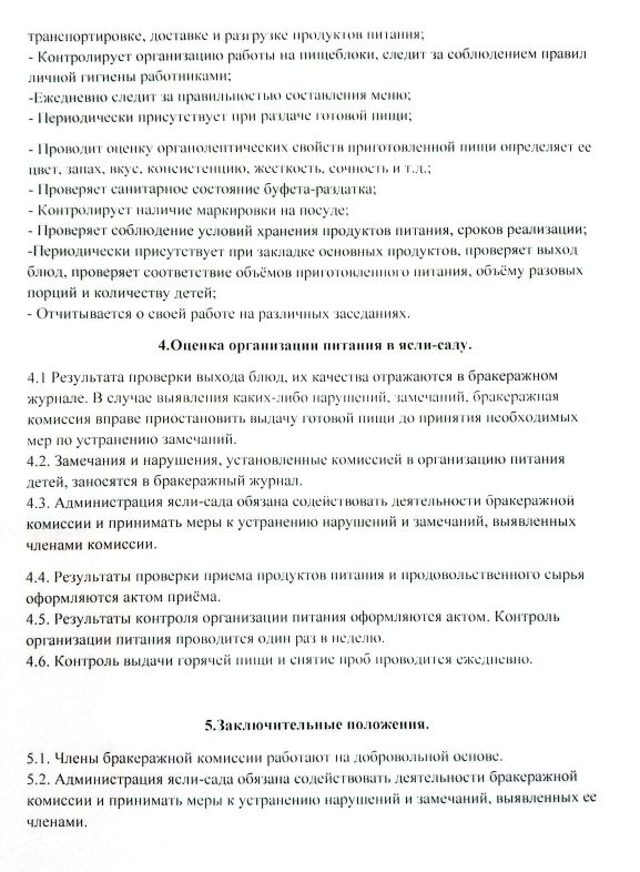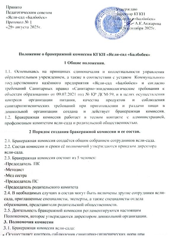 Положение о бракеражной комиссии КГКП «Ясли-сад «Балбөбек»