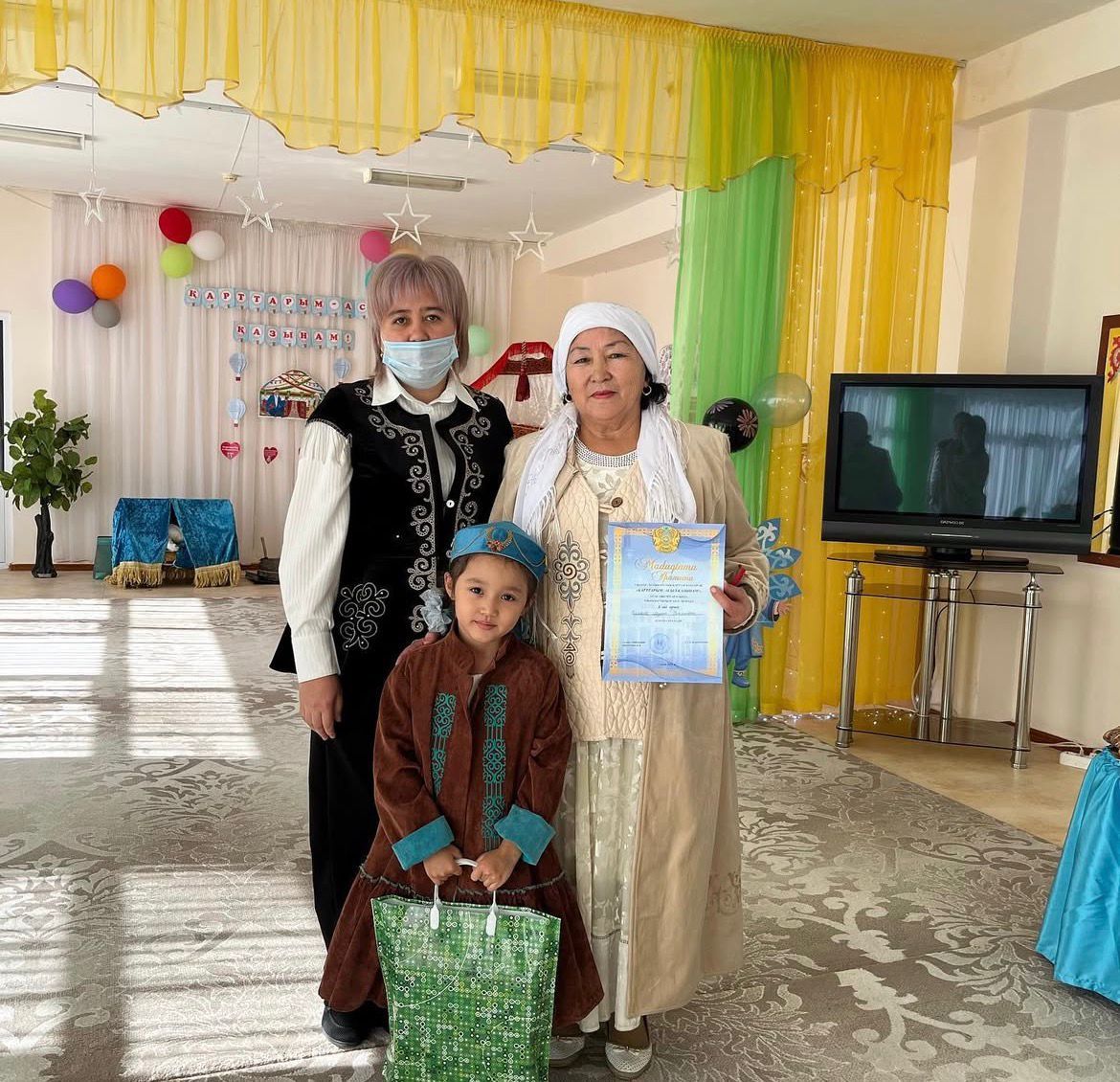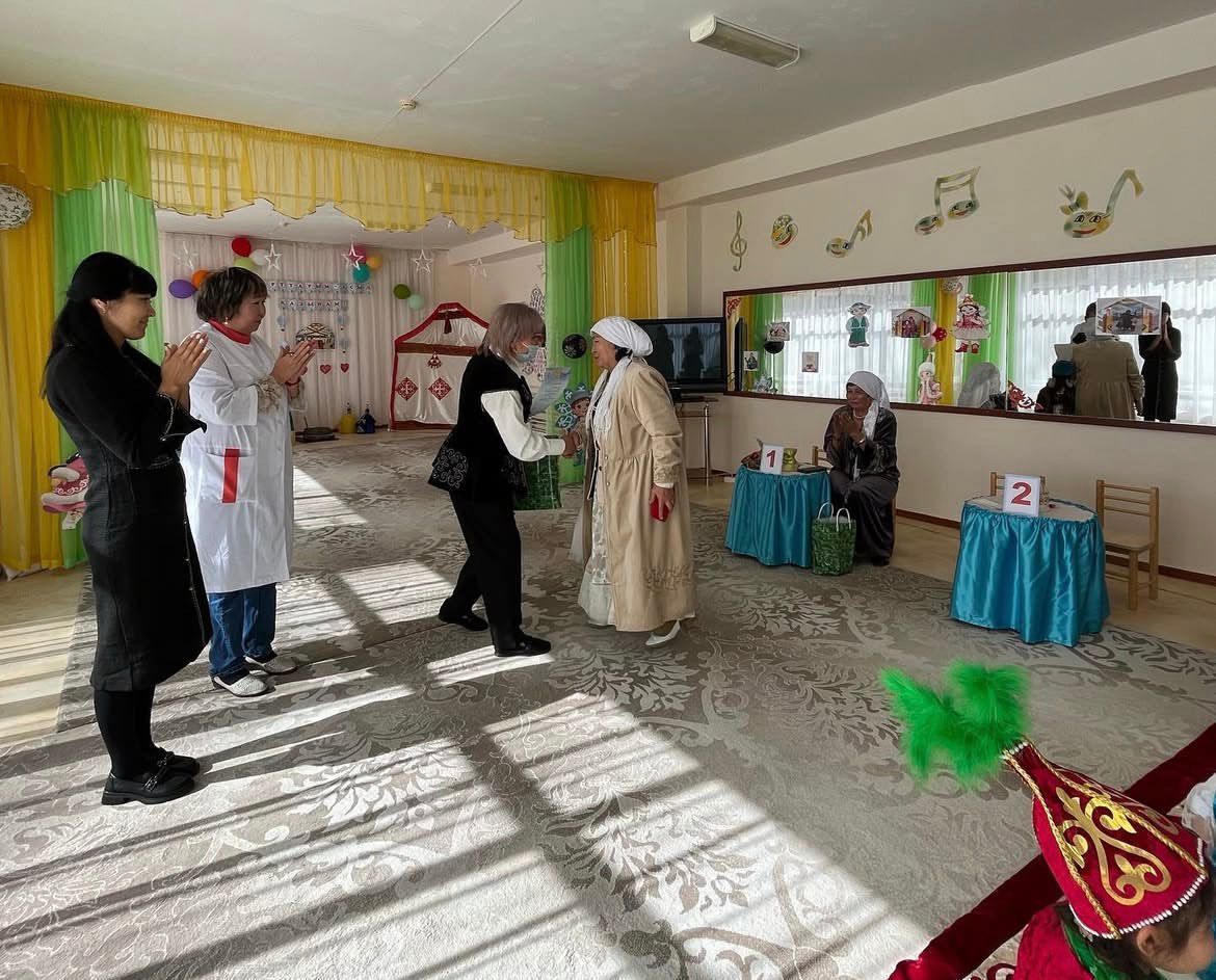 “Аққу”бөбекжай КМҚК-да “Қарттарым асыл-қазынам!”-атты тақырыбында ұйымдастырылған іс-шара “Әжелер” сайысы өтілді. I-кезең:”Сәлем сөздің анасы” (таныстыру) II-кезең:”Сыр сандық”(сұрақ-жауап) III-кезең:”Өнерлінің қолы алтын,Өленшінің сөзі алтын”(қолөнер) IV-кезең:”Мақал-мәтелдер” V-кезең:Салт-дәстүрмен таныстыру. VI-кезең: Қазақтың ұлттық тағамдары. “Жұлдыз” мектепалды тобы “Кілемше”. биін биледі.Музыка жетекшісі Сейтимова Гүлден Төлешбайқызы “Алғыс” әнімен қарттарымызды құттықтап, сайысымыздың сөз кезеңнің әділ қазылар алқасына берді. Қортындылай келгенде әр номинация бойынша Әжелерімізді жүлделерімен марапаттады. I-орын:Сарсекеева Лаззат Рахимовна немересі Мажитова Алуа. II-орын: Шакимарданова Рысжан немересі Азаматқызы Жансая. III-орын: Мазмаганбетова Шарбан Сейсенбекқызы немересі Баймуханбет Айзере Архатқызы.