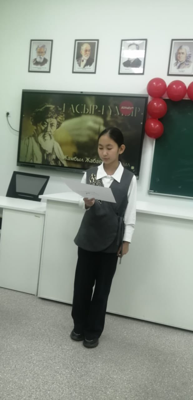 Тарихи сауаттылық апталығы аясында 7 - сыныпта "Жыр алыбы Жамбыл" тақырыбында сынып сағаты өтті.