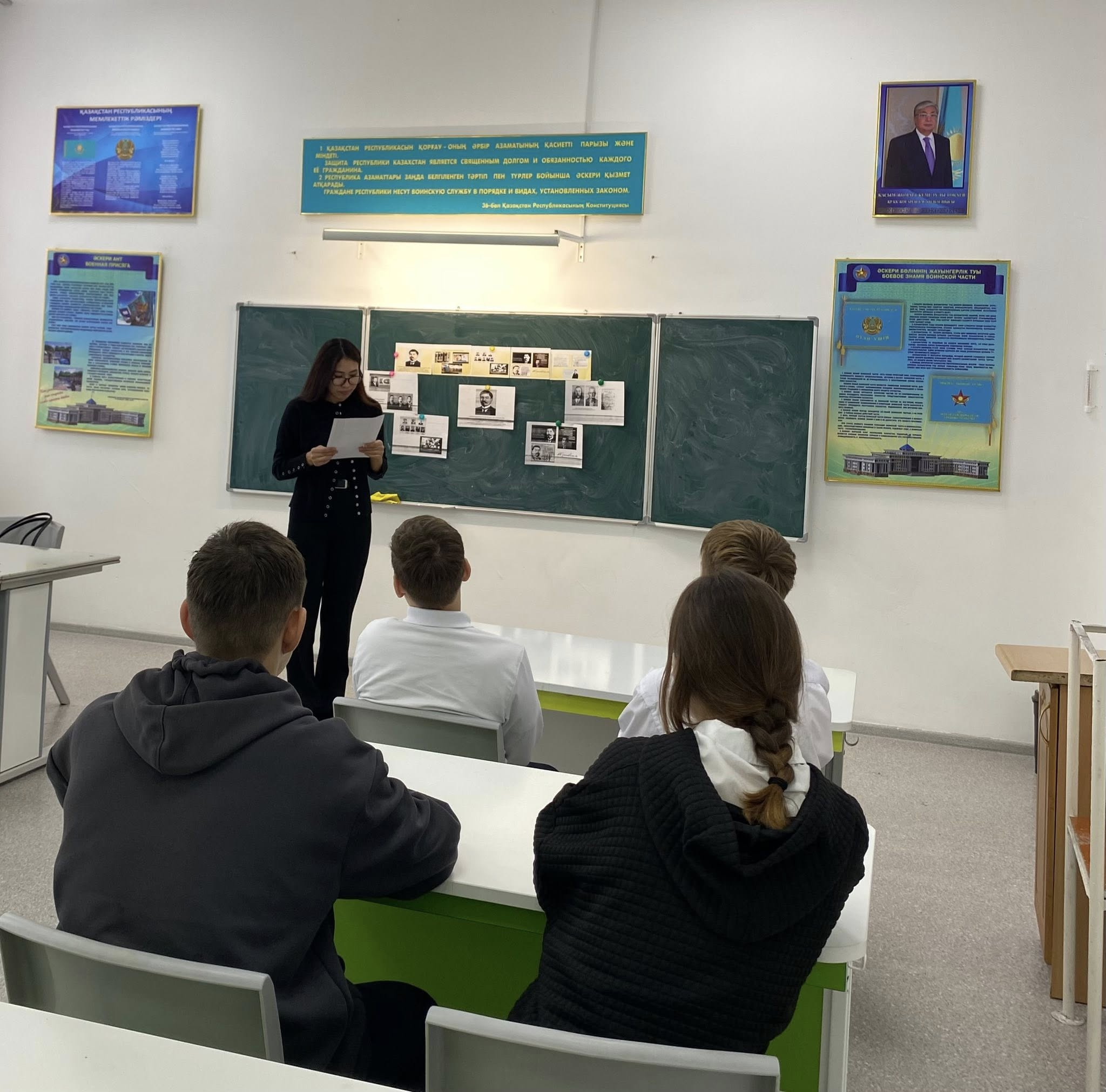 В рамках недели исторической грамотности среди учащихся 11-го класса был проведен классный час "Семипалатинский полигон - боль народа", целью которого было дальнейшее изучение истории поли…