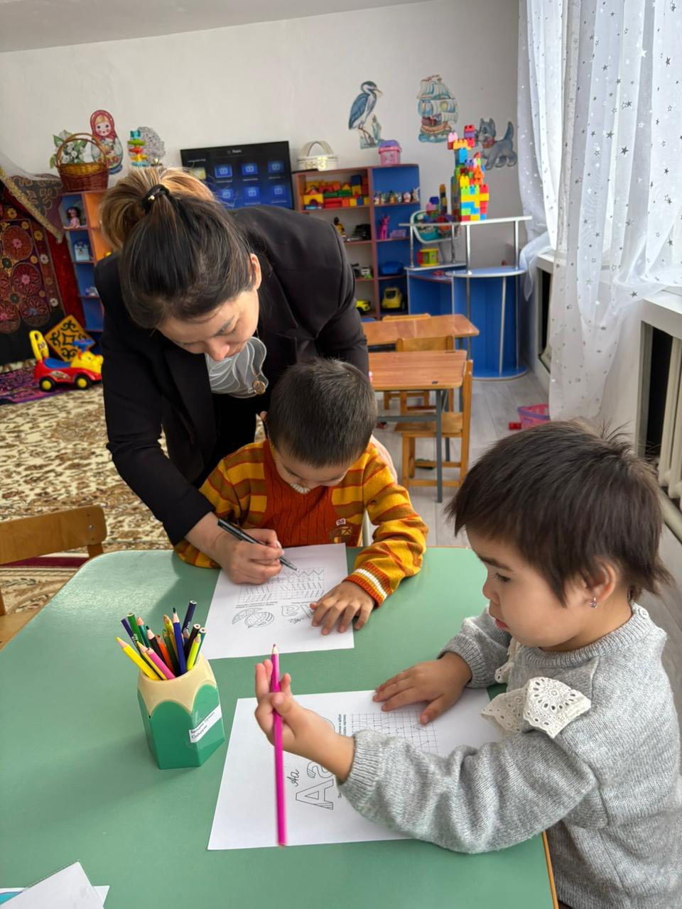 М. Дулатұлы атындағы ЖББМ жанындағы “Айгөлек” шағын орталығында қазақ тілі мұғалімі Г. И Бекеева қазақ тіліндегі әріптерді таныстырып, жазғызып жұмыстар жүргізуде. Мақсаты: Балаларды біл…