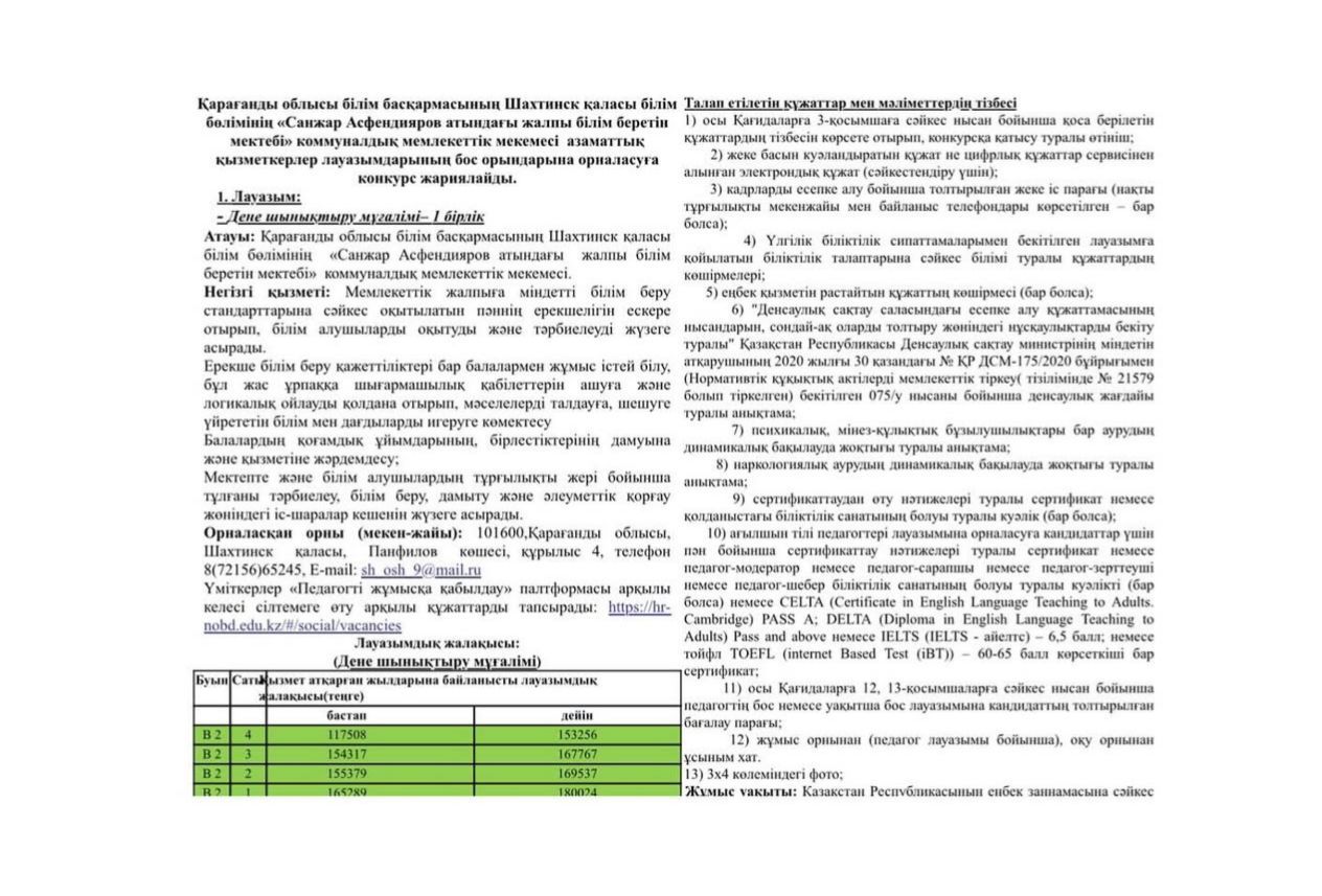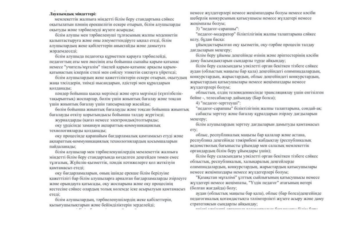 Бастауыш сынып мұғалімінің конкурс нәтижесі