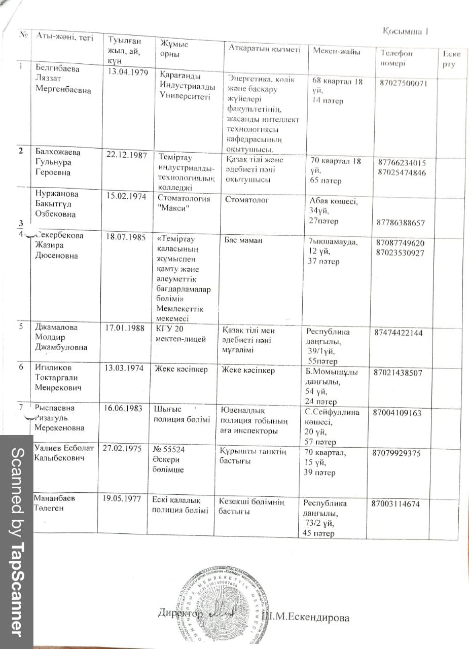 Қарағанды облысы білім басқармасының Теміртау қаласы білім бөлімінің "Ғабиден Мұстафин атындағы жалпы білім беретін мектебі" коммуналдық мемлекеттік мекемесінің 2021-2022 оқу жылына арналған қамқоршылық кеңесінің тізімі.