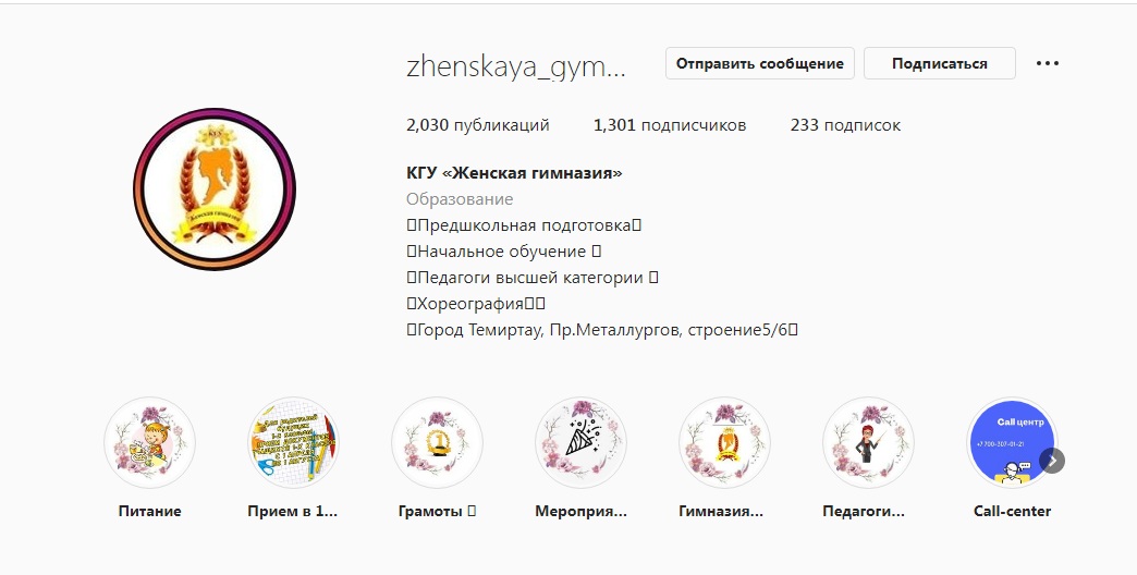 Ссылка в инстаграм:https://www.instagram.com/zhenskaya_gymnasia_/ |