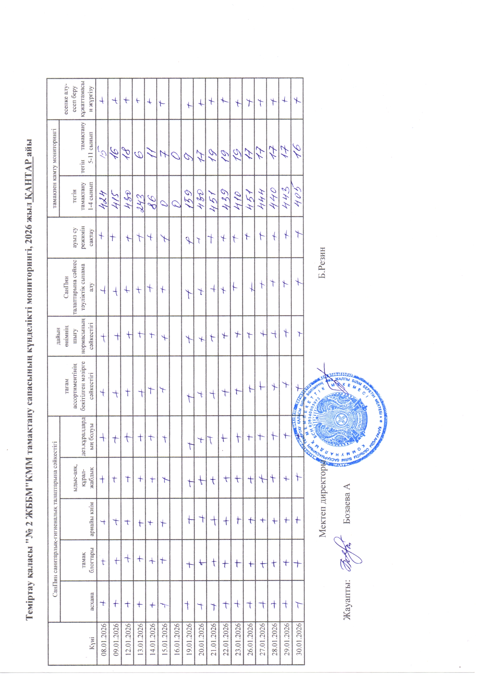 Ай сайынғы тамақтану сапасына жүргізу актісіТамақтану сапасына мониторинг жүргізу актісі. Қанта райы |