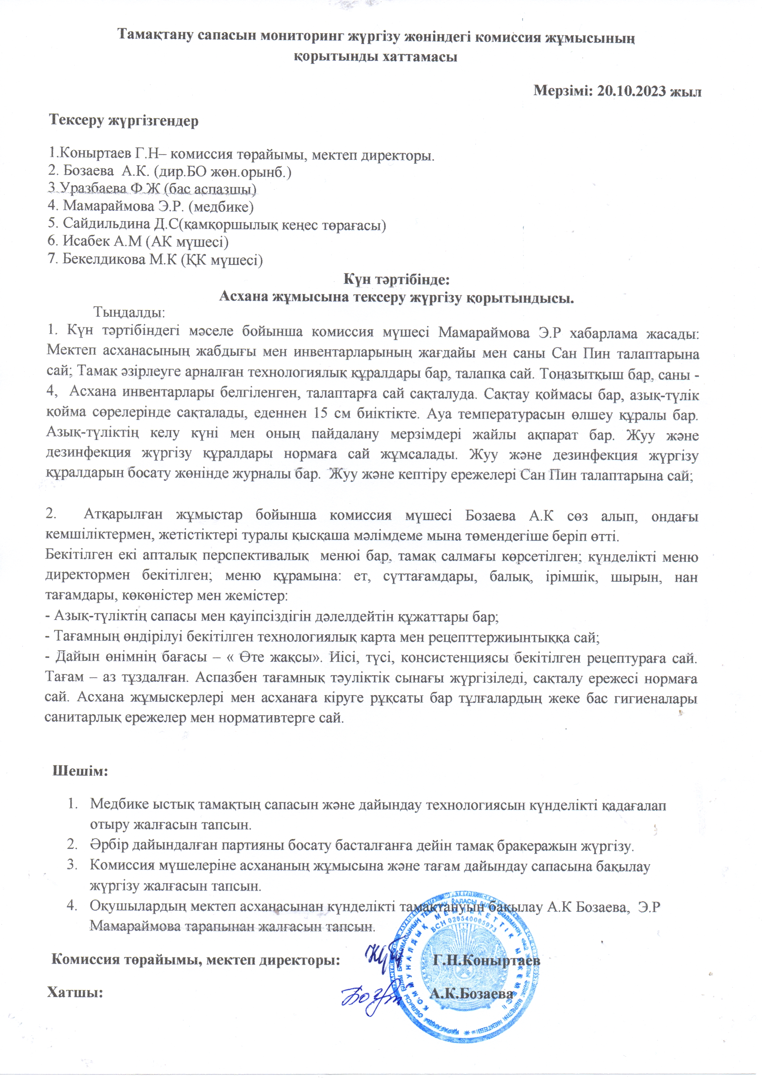 Итоговый протокол работы комиссии по контролю качества питания.