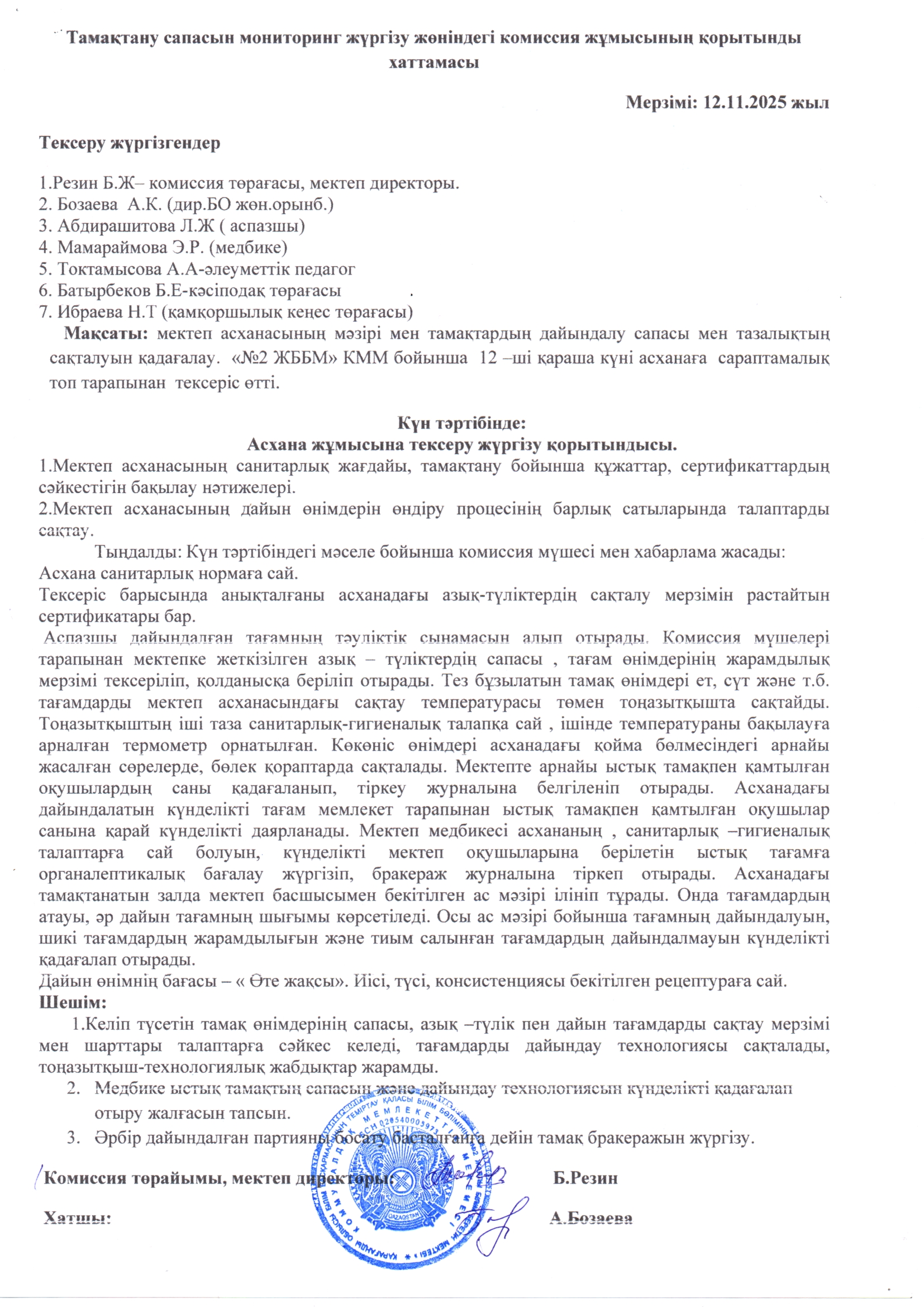 Протокол за ноябрь месяцИтоговый протокол работы комиссии по контролю за качеством питания |