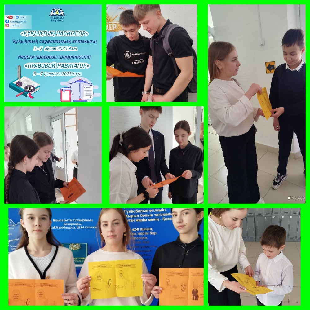 Оперативка « Школа территория закона. Выпуск листовок.03.02.2025 г. в рамках недели правовой грамотности «Правовой навигатор» проведено мероприятие Оперативка « Школа территория закона». Цель: совершенствование системы обучения детей и подростков культуре поведения в школе. Цель реализации Плана правового воспитания: формирование правовой культуры обучающихся, представлений об основных правах и обязанностях, о принципах демократии, об уважении к правам человека и свободе личности. |