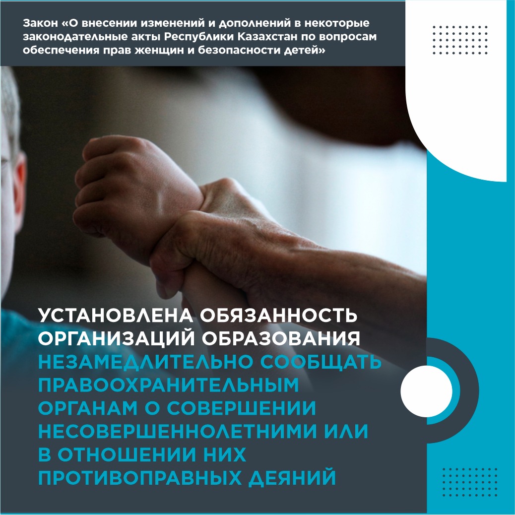 «О внесении изменений и дополнений в некоторые законодательные акты Республики Казахстан по вопросам обеспечения прав женщин и безопасности детей» |