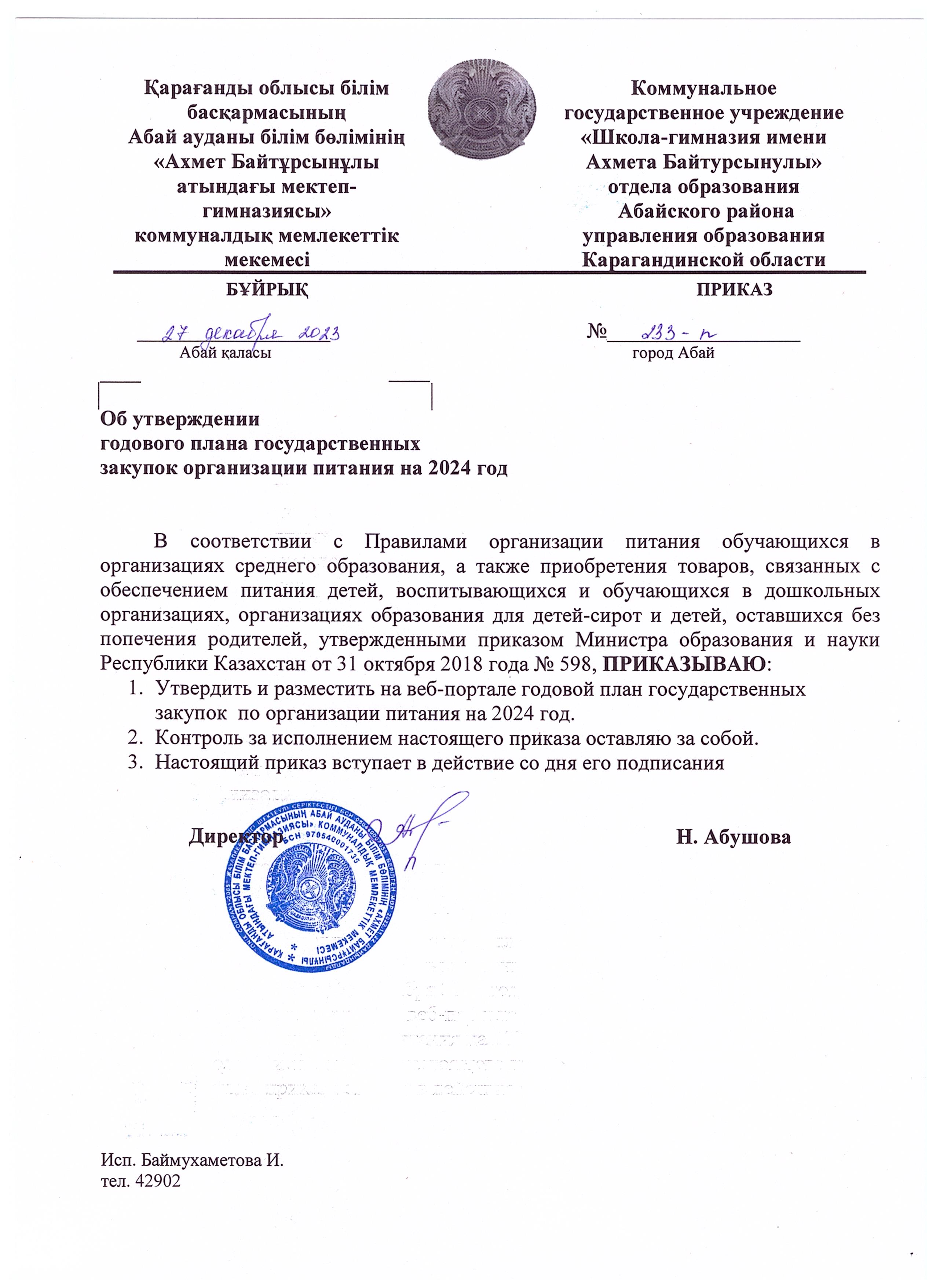 КГУ "Школа-гимназия имени Ахмета Байтурсынулы"