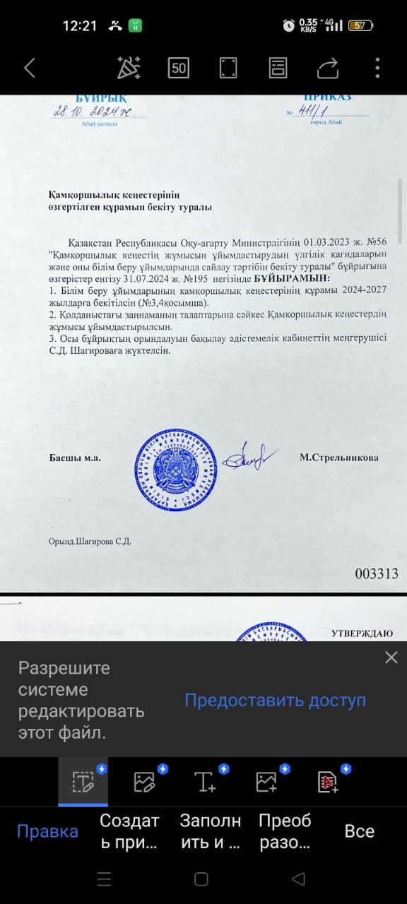 БұйрықҚамқоршылық кеңес бұйрығы |