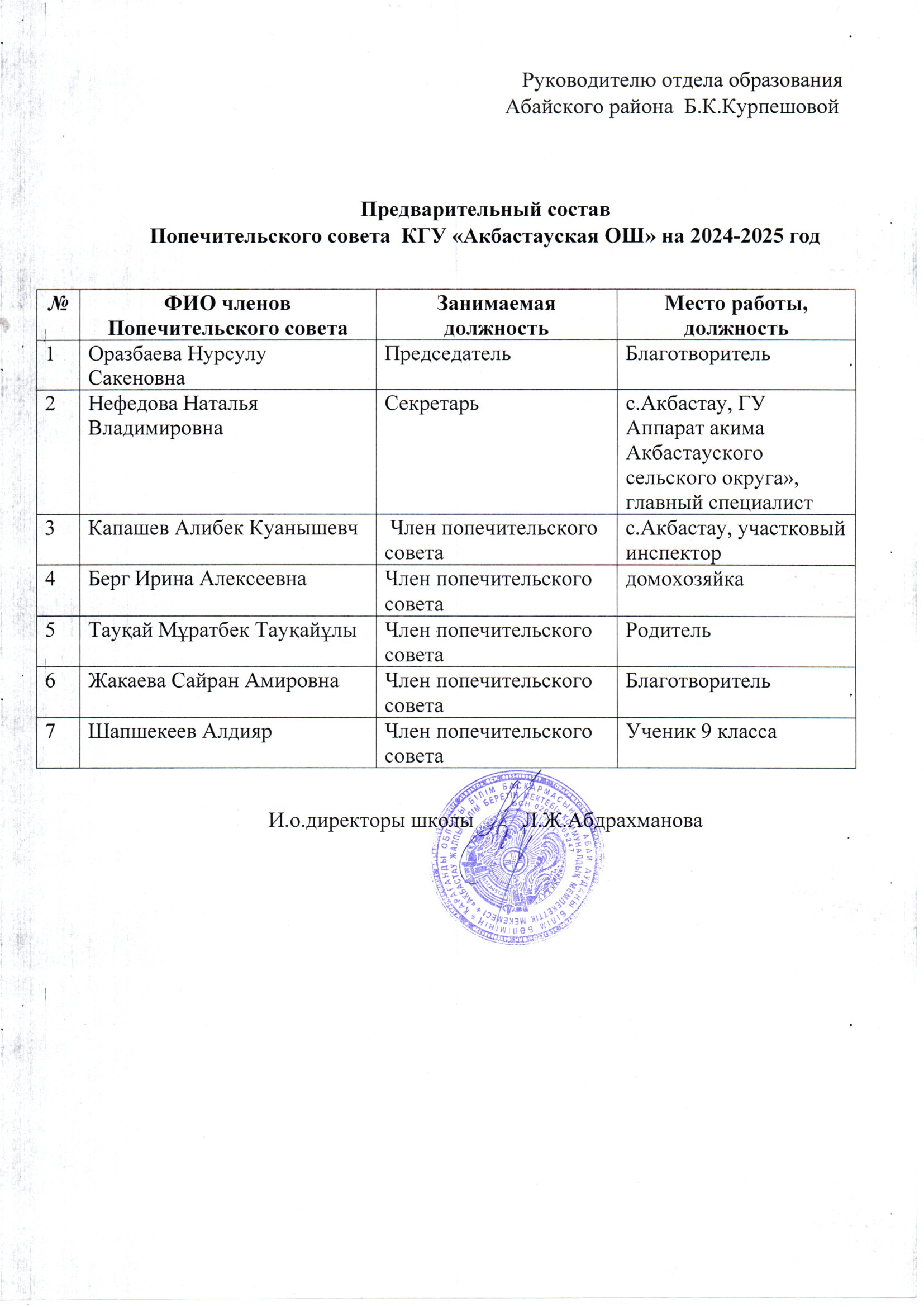 Қамқоршылар кеңесінің құрамыСостав попсовет |