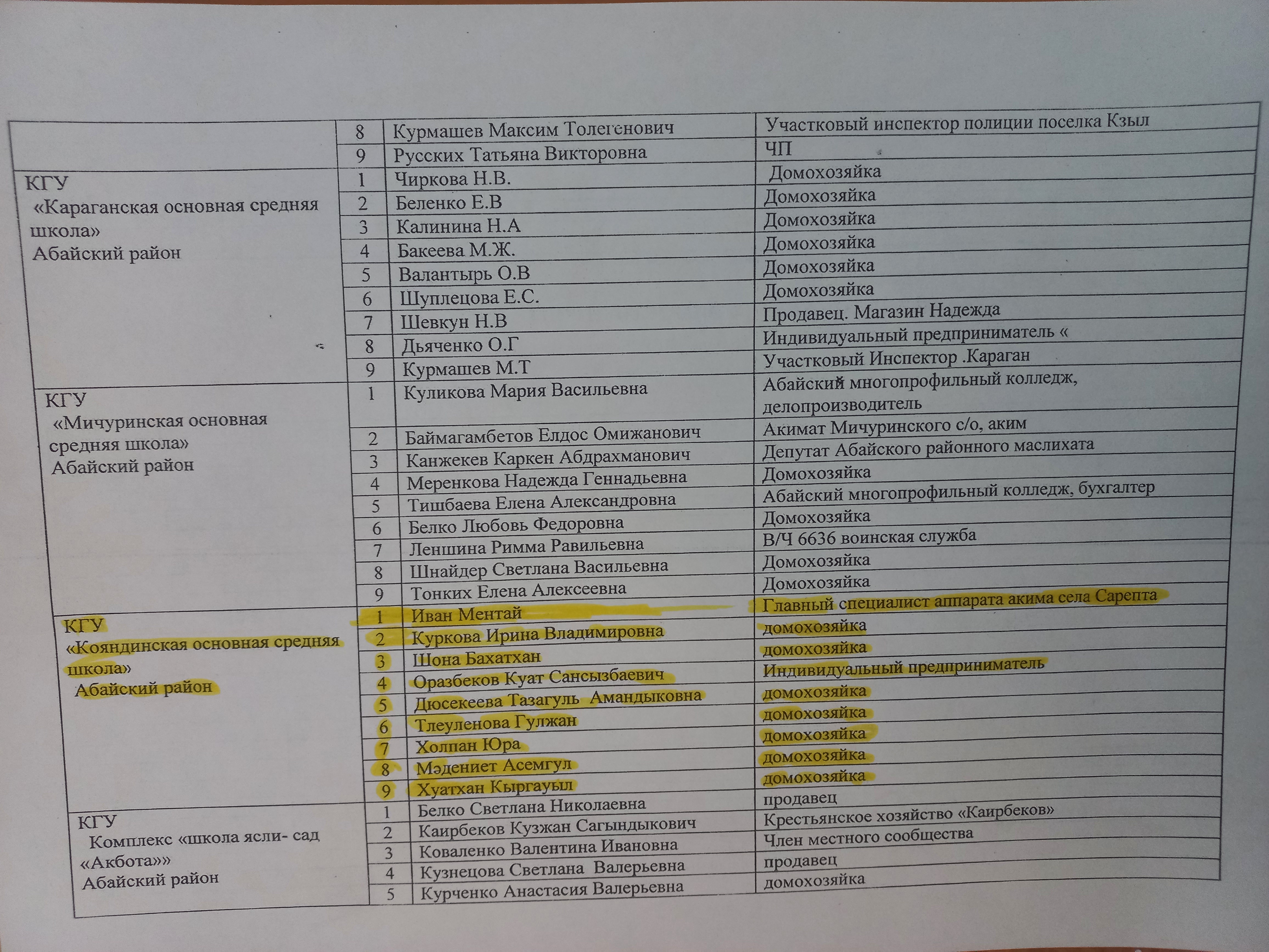 Ауданның бекіткен құрамы