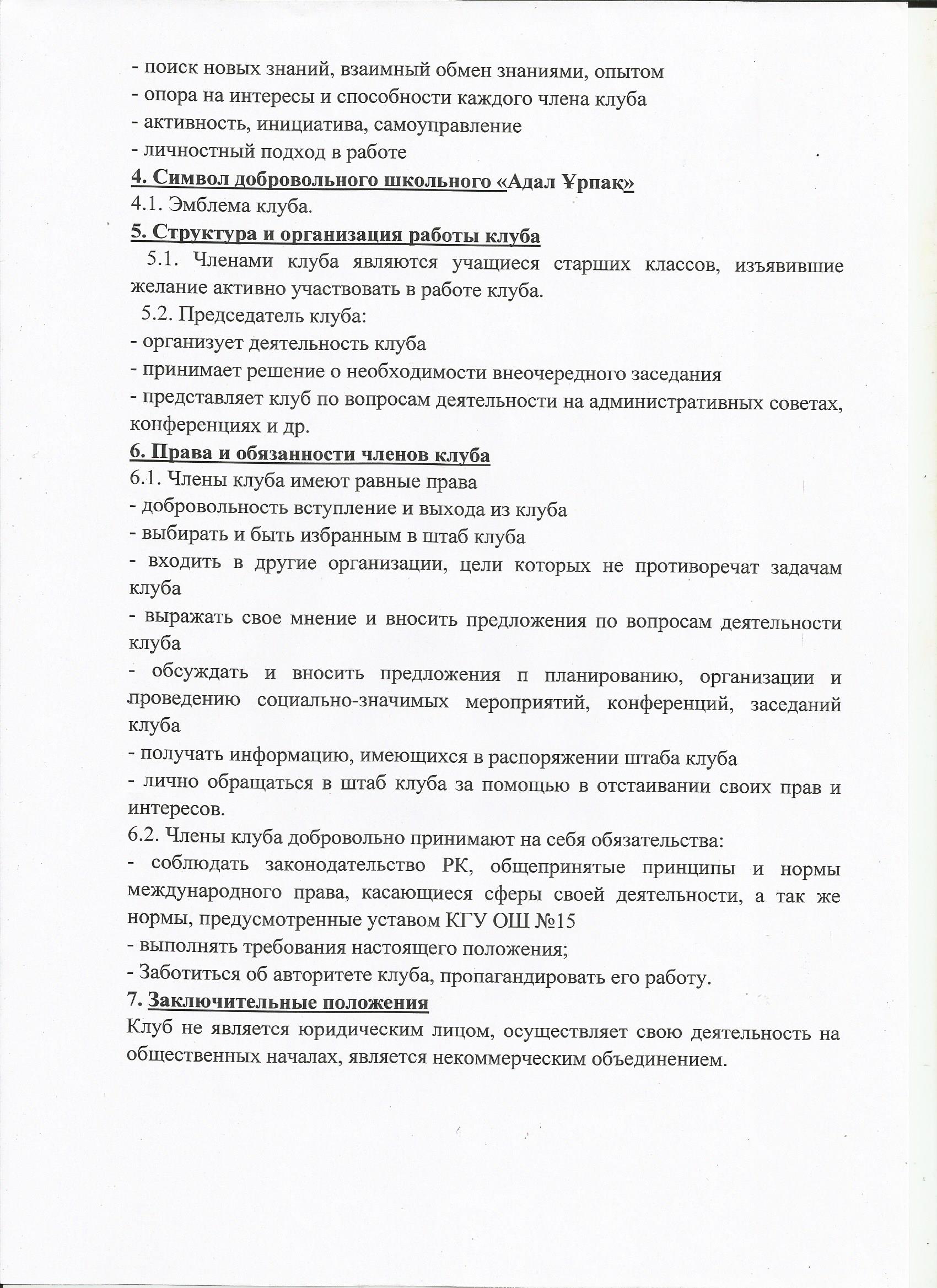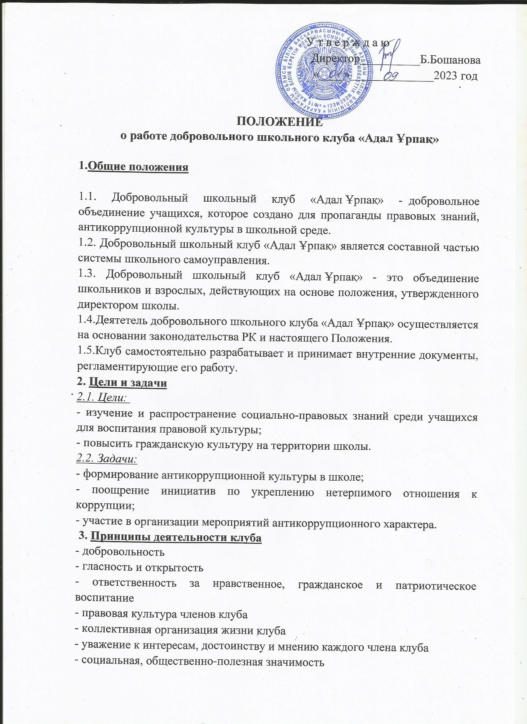 ПоложениеПоложение о работе добровольного школьного клуба "Адал Ұрпақ" на 2023-2024 учебный год |