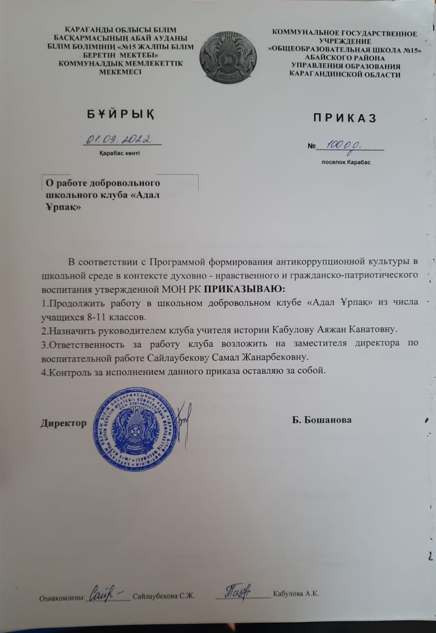 о работе школьных клубов «Адал ұрпақ» 2021-2022 учебный год.